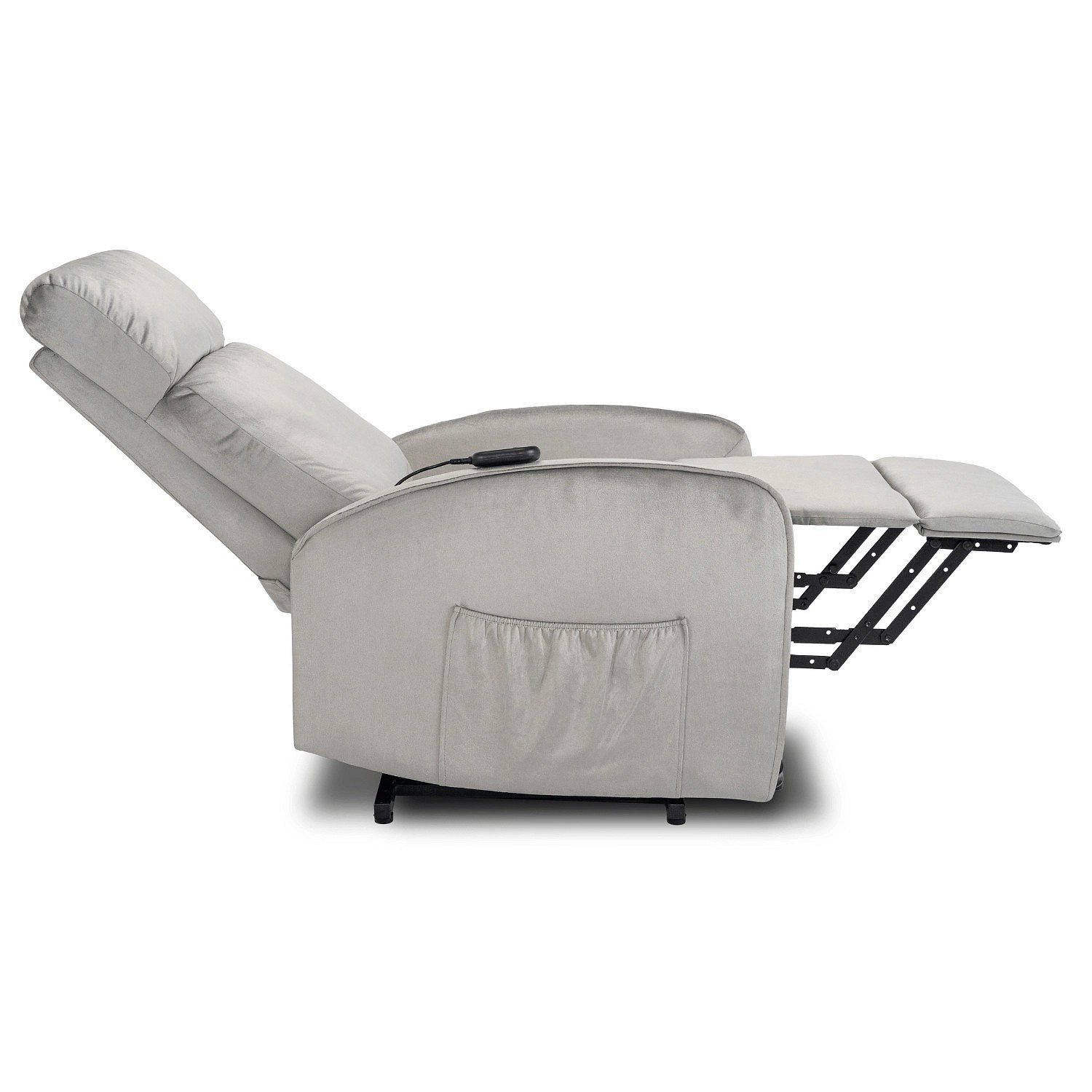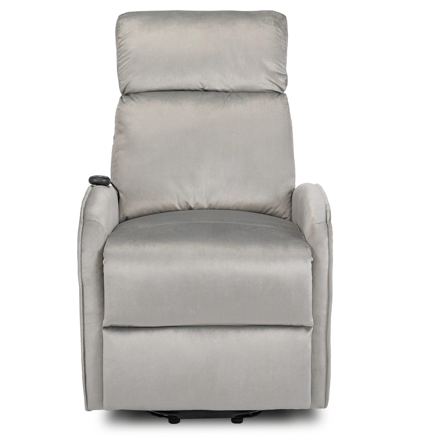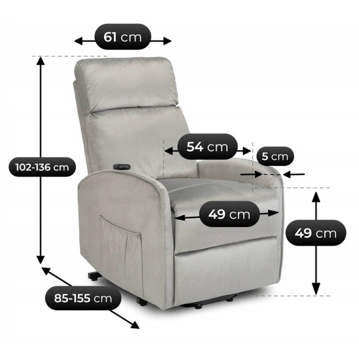 Fotel Elektrycznie Rozkładany COLTON z Funkcją Wstawania Szary Welurowy