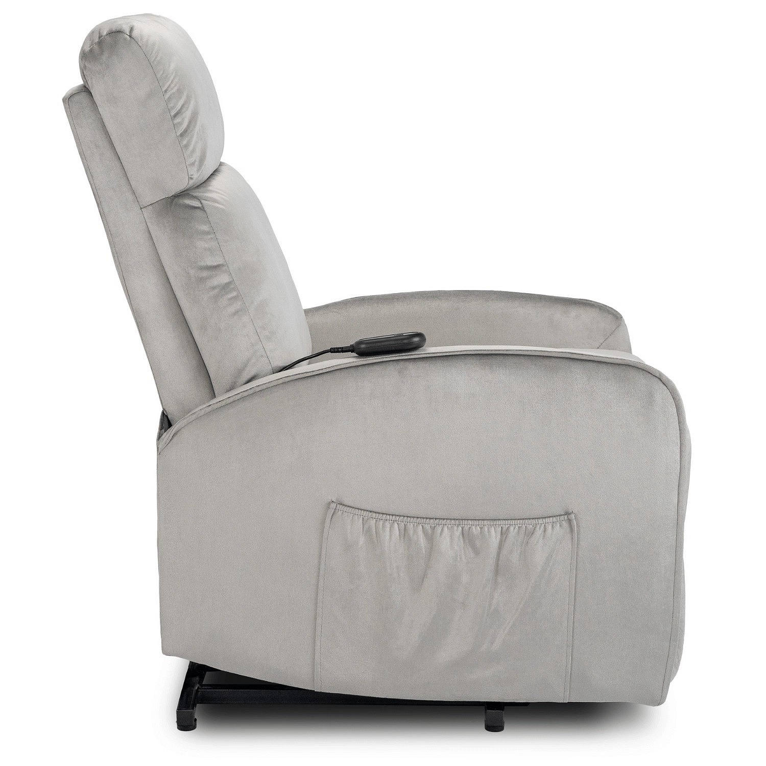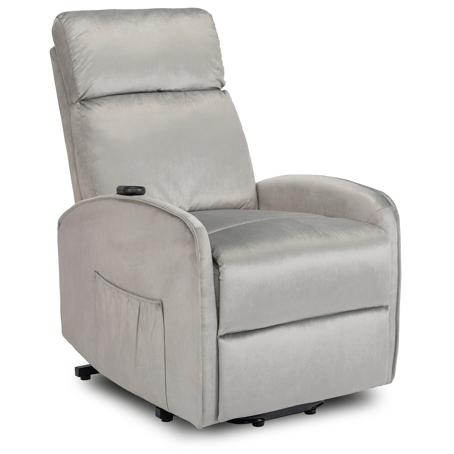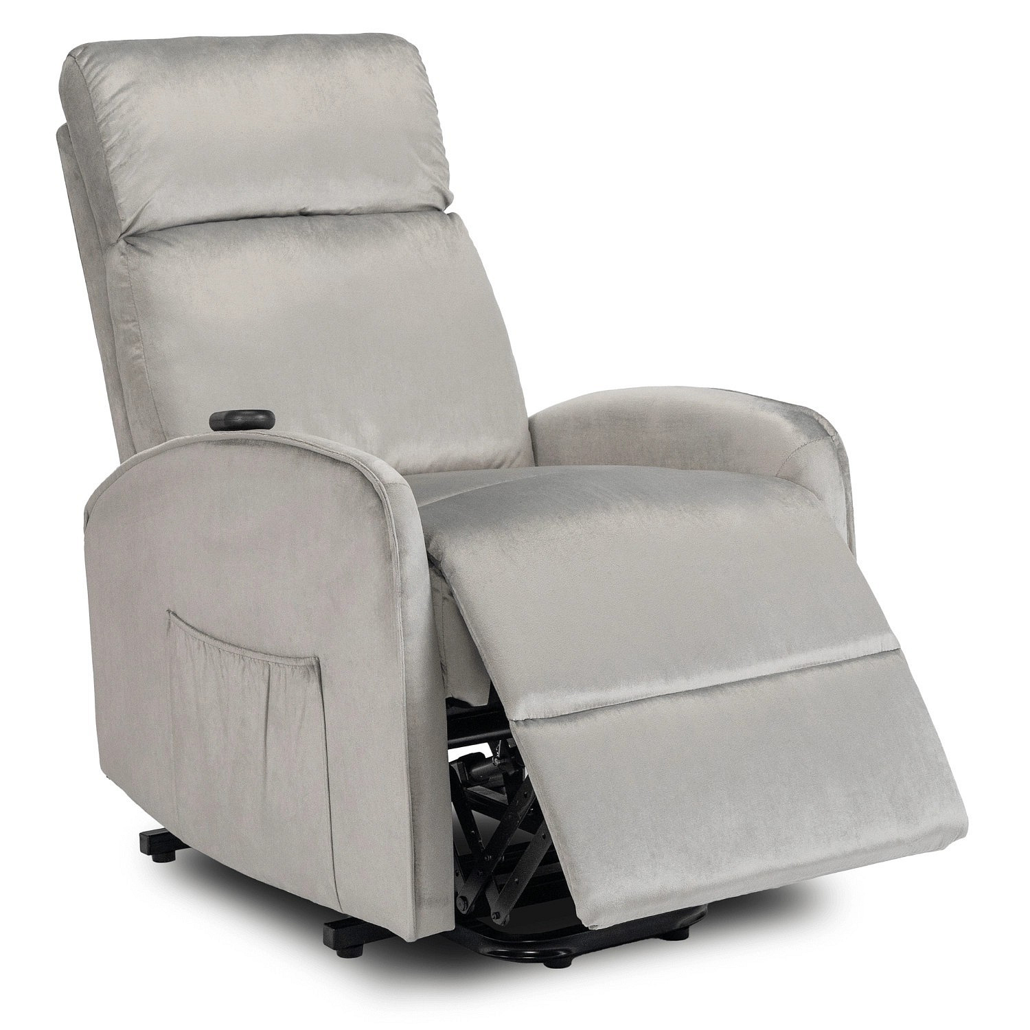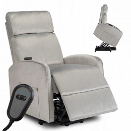 Fotel Elektrycznie Rozkładany COLTON z Funkcją Wstawania Szary Welurowy