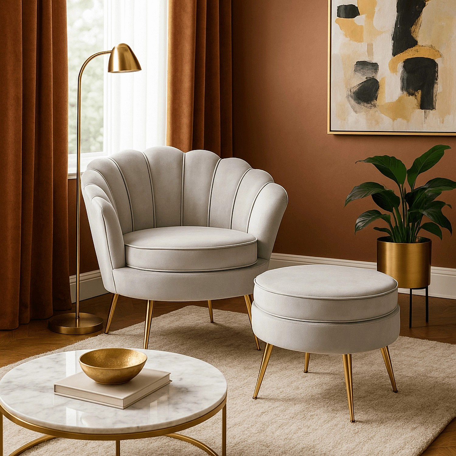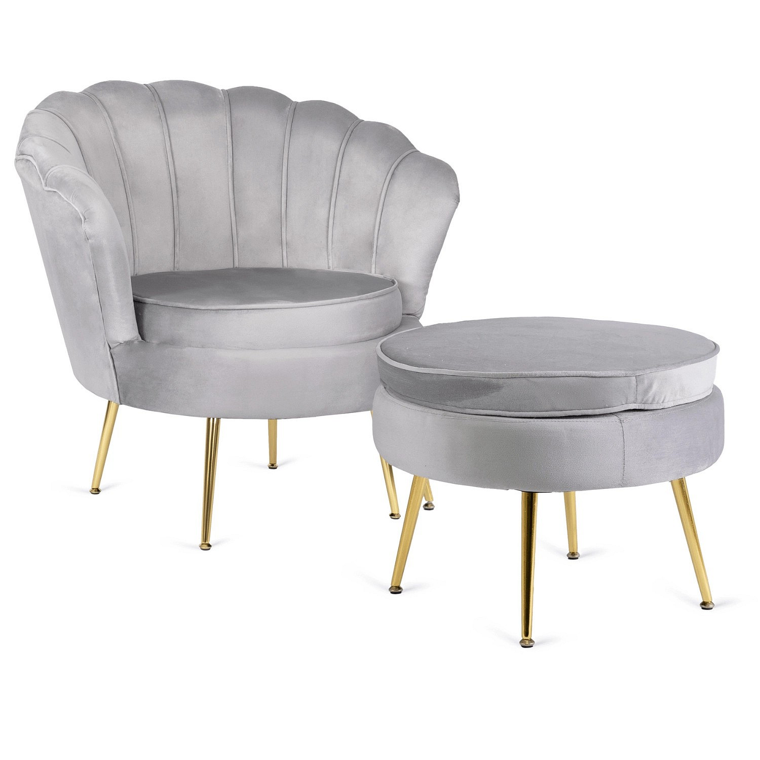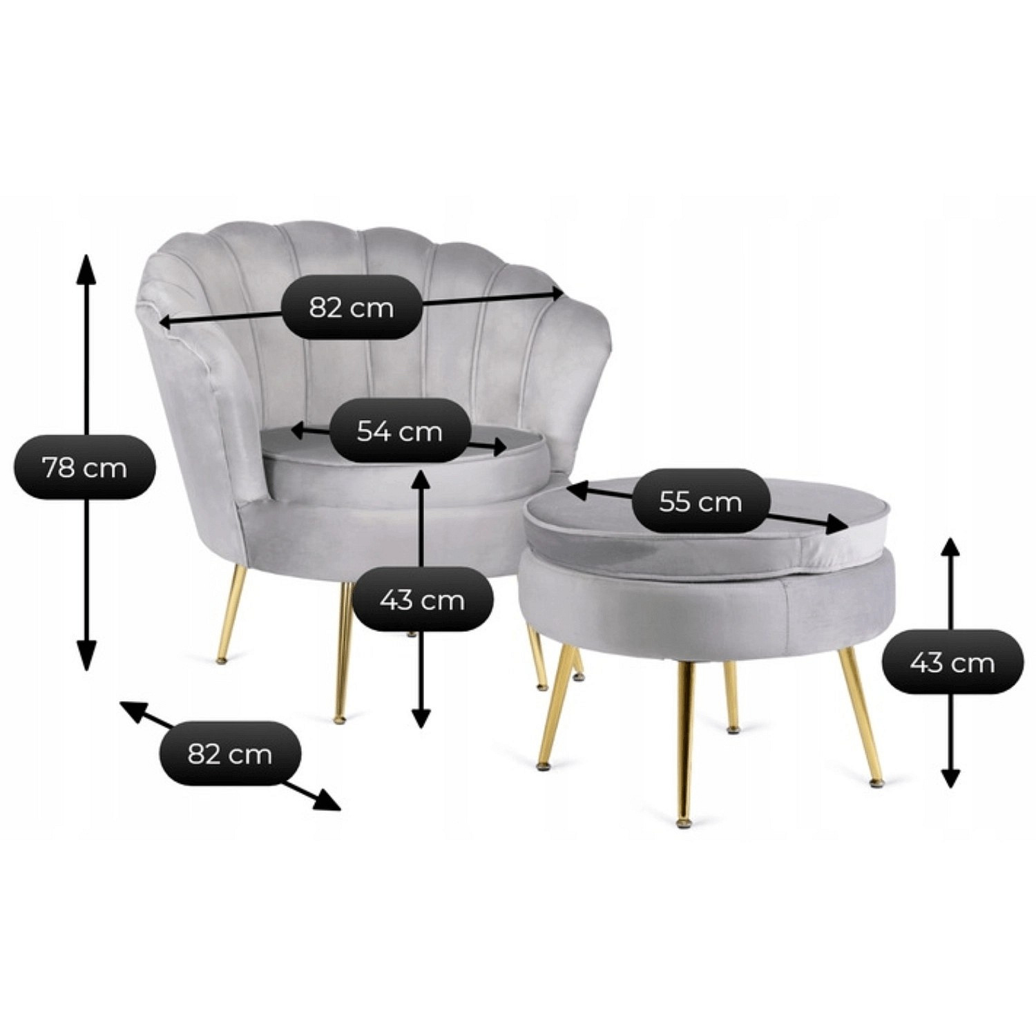 Fotel GRAND z Podnóżkiem Szary Welurowy