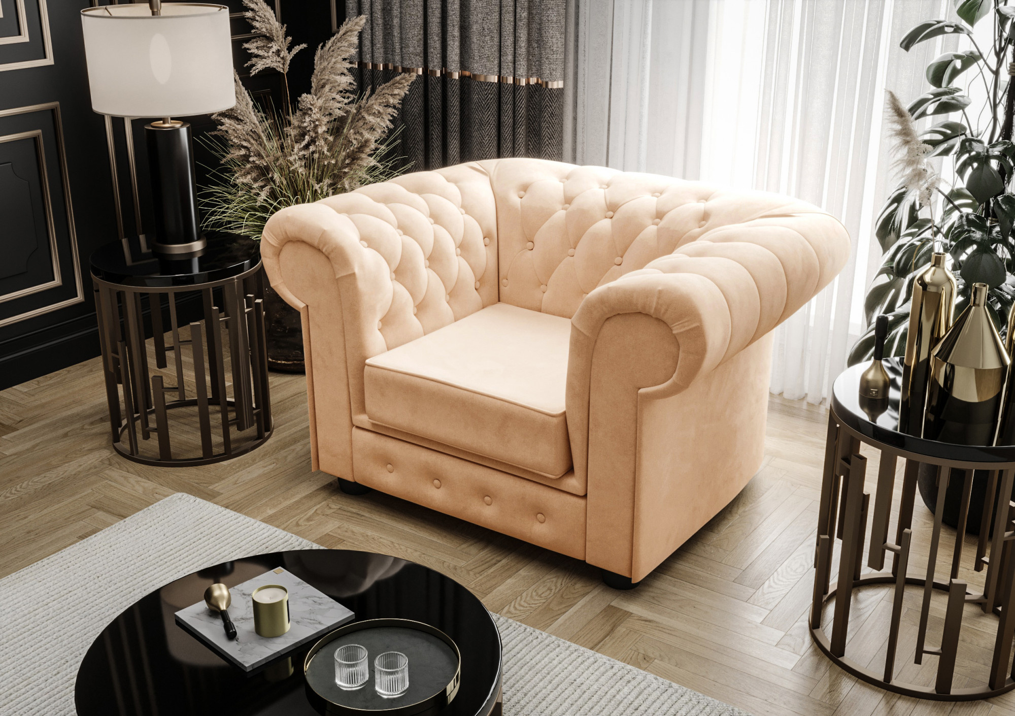 Fotel Manchester to elegancki i klasyczny fotel w stylu angielskim. To ikona stylu, która niezmiennie zachwyca swoim eleganckim wyglądem i niezrównanym komfortem. Wykonany z największą dbałością z najwyższej jakości materiałów. Charakteryzuje się głębokimi pikowaniami wykończonymi guzikami. Fotel idealnie pasuje do każdego wnętrza. Jedną z najbardziej rozpoznawalnych cech fotela Manchester jest jego pikowane oparcie, które nadaje mu elegancki i wytworny wygląd. Guziki umieszczone na oparciu nie tylko dodają mu stylowego charakteru, ale także pomagają utrzymać wypełnienie w odpowiednich miejscach, co zapewnia długotrwałą wygodę użytkowania. Inną charakterystyczną cechą fotela Manchester jest wyprofilowane oparcie, które zapewnia optymalne wsparcie dla pleców i kręgosłupa, nawet podczas długotrwałego siedzenia. Fotel Manchester jako symbol elegancji Od czasów swojego powstania fotel Manchester był symbolem luksusu i prestiżu. Jego elegancki wygląd i wyjątkowy design nadal sprawiają, że jest pożądanym elementem wyposażenia każdego eleganckiego wnętrza. Fotel Manchester jest wszechstronnym meblem, który doskonale sprawdza się w różnych pomieszczeniach. W salonie może pełnić rolę eleganckiego akcentu, który dodaje klasy i stylu całej przestrzeni. W gabinecie lub bibliotece stanie się miejscem do relaksu i skupienia, zapewniając komfortowe wsparcie podczas czytania lub pracy przy biurku. Wymiary: Szerokość: 115 cm Wysokość: 72 cm Głębokość: 98 cm Tolerancja wymiarów: +/- 3% W każdym zagłębieniu został umieszczony guzik. Możliwość wykończenia kryształkami. Każde pikowanie wykończone guzikiem Drewniane nóżki Bogata paleta kolorów do wyboru w wysokiej jakości tkaninie Velvet Fotel Manchester pochodzi z kolekcji, która składa się z sof Manchester o dwóch szerokościach - 188 cm oraz 218 cm. Przy każdej sofie jest możliwość dopasowania funkcji spania. Fotel Machester został wykonany w tkaninie MCV2281 Kolekcję MCV stworzono w jakości Cleanaboo, z myślą o najwyższym komforcie użytkowania. Co to oznacza? Oznacza to więc, że zastosowano technologię polegającą na ograniczeniu wchłaniania wody. Technologia ta polega na tym, że każdy rozlany płyn formuje się w krople i nie wnika do wnętrza tkaniny. Ponadto kolekcja MCV charakteryzuje się właściwościami trudnopalnymi więc jest bardzo mile widziana w hotelach lub innych miejscach, w których istnieje ryzyko pożaru. Właściwości trudnopalne potwierdzone zostały atestem Instytutu Włókiennictwa w Łodzi, wydanym zgodnie z normą PN-EN 1021-1:2014-12. Certyfikat ten gwarantuje, że układ tapicerski odporny jest na tlenie oraz zapłon płomieniem, którego źródłem jest tlący się papieros – jedna z najczęstszych przyczyn pożarów w domach. Czyszczenie tkaniny odbywa się przy użyciu łagodnych środków do pielęgnacji tapicerki więc nie należy prać na mokro ani też wybielać. Skład: 100 % z poliester Test Martindale: ponad 60 000 cykli. Gramatura: 300 g / m2 +- 5% Szerokość: 142 cm +- 3 cm Przesunięcie w szwie: Kategoria A, Mechacenie i Pilling: Kategoria A.