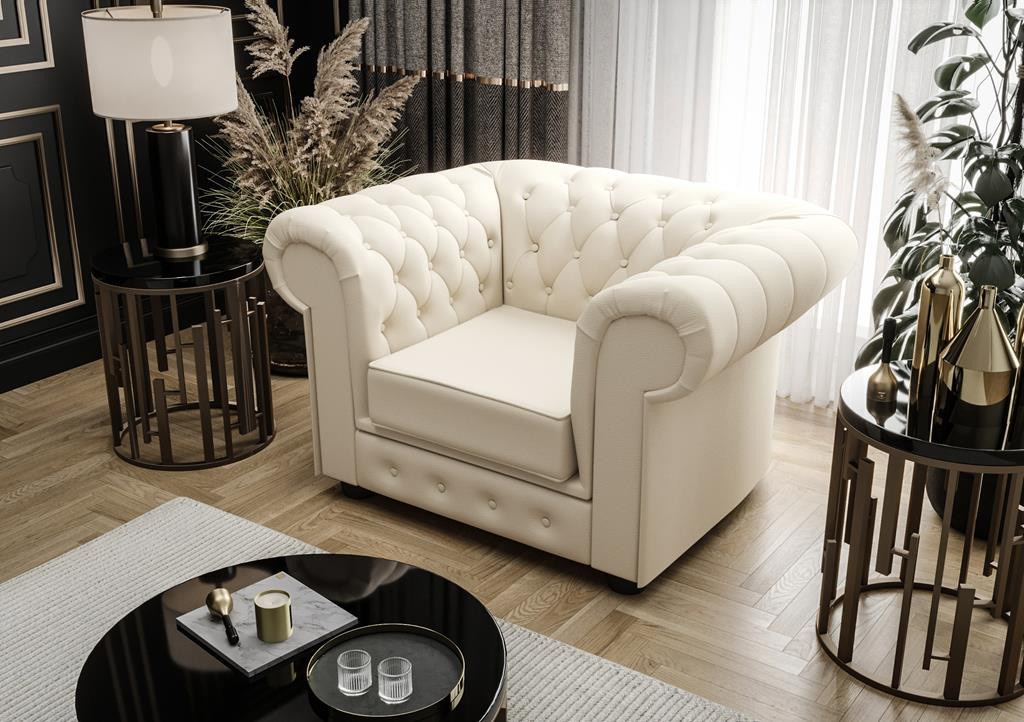 Fotel Manchester w skórze naturalnej to elegancki i klasyczny fotel w stylu angielskim. To także ikona stylu, która niezmiennie zachwyca swoim eleganckim wyglądem i niezrównanym komfortem. Wykonany z największą dbałością z najwyższej jakości materiałów. Charakteryzuje się głębokimi pikowaniami wykończonymi guzikami. Jedną z najbardziej rozpoznawalnych cech fotela Manchester jest jego pikowane oparcie, które nadaje mu elegancki i wytworny wygląd. Guziki umieszczone na oparciu nie tylko dodają mu stylowego charakteru, ale jednocześnie pomagają utrzymać wypełnienie w odpowiednich miejscach, co zapewnia długotrwałą wygodę użytkowania. Inną charakterystyczną cechą fotela Manchester jest wyprofilowane oparcie, które zapewnia optymalne wsparcie dla pleców i kręgosłupa, nawet podczas długotrwałego siedzenia. Fotel Manchester skóra naturalna Od czasów swojego powstania fotel Manchester był symbolem luksusu i prestiżu. Jego elegancki wygląd oraz wyjątkowy design sprawiają, że nadal jest pożądanym elementem wyposażenia każdego gustownego i eleganckiego wnętrza. Fotel Manchester to mebel wszechstronny, który z pewnością doskonale sprawdzi się w różnych pomieszczeniach. W salonie może pełnić rolę eleganckiego akcentu, który dodaje klasy i stylu całej przestrzeni. Natomiast w gabinecie lub bibliotece stanie się miejscem do relaksu i skupienia, niewątpliwie zapewniając komfortowe wsparcie podczas czytania lub pracy przy biurku. Wymiary: Szerokość: 115 cm Wysokość: 72 cm Głębokość: 98 cm Tolerancja wymiarów: +/- 3% W każdym zagłębieniu został umieszczony guzik. Możliwość wykończenia kryształkami. Każde pikowanie wykończone guzikiem Drewniane nóżki Bogata paleta kolorów do wyboru w wysokiej jakości skórze naturalnej Fotel Manchester pochodzi z kolekcji, która obejmuje również sofy Manchester o dwóch szerokościach – 188 cm oraz 218 cm. Przy każdej sofie jest możliwość dopasowania funkcji spania, co czyni je jeszcze bardziej praktycznymi. Wirtualna galeria Zobacz nasze realizacje kolekcji Manchester na żywo i przejdź do GALERII. Możesz również śledzić nas na Facebooku, aby być na bieżąco z nowościami i inspiracjami.
