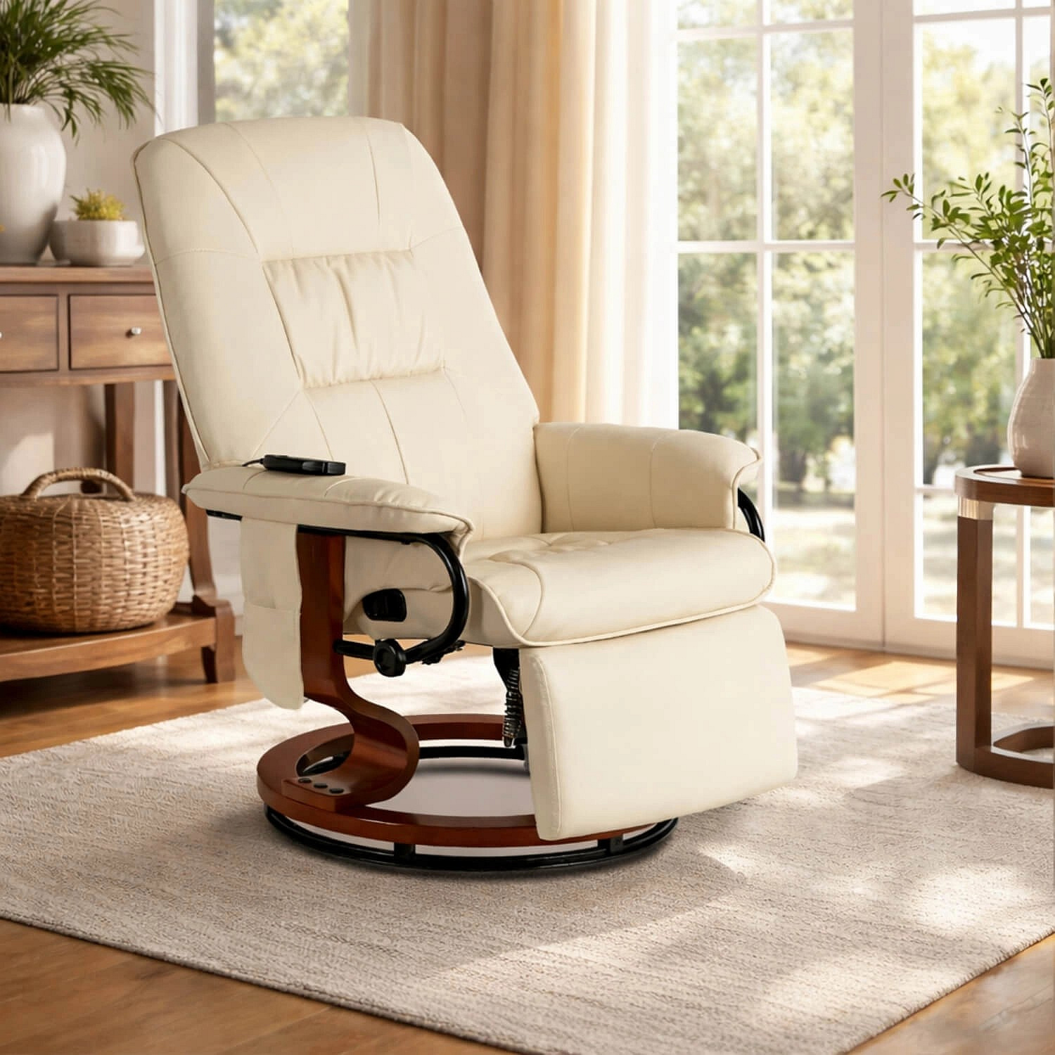 Fotel Obrotowy Masujący WEST Podgrzewany Beżowy Ekoskóra