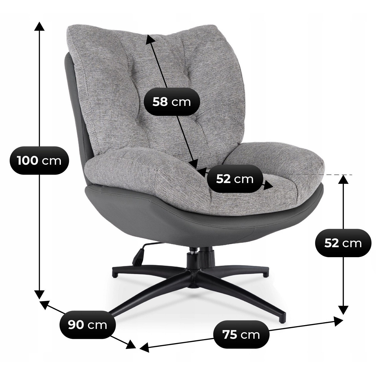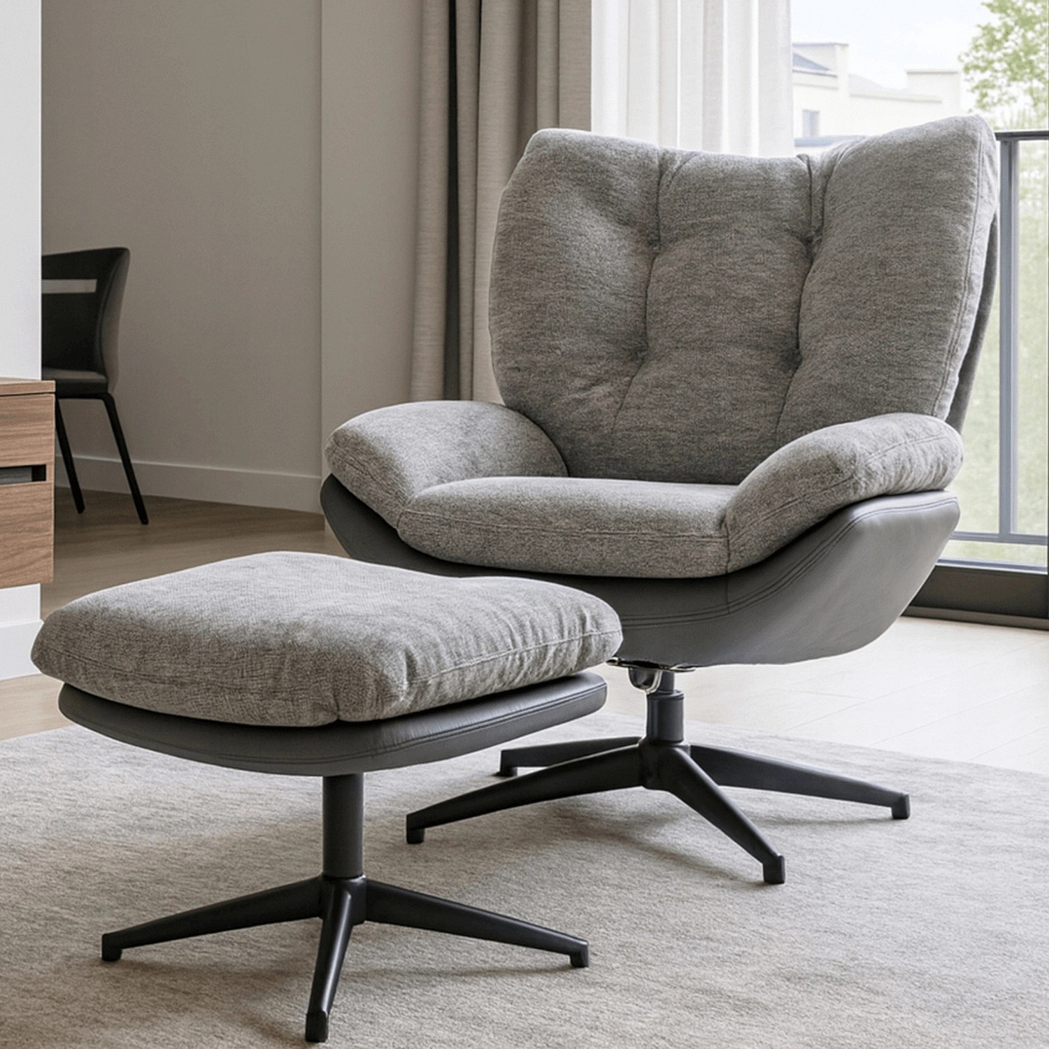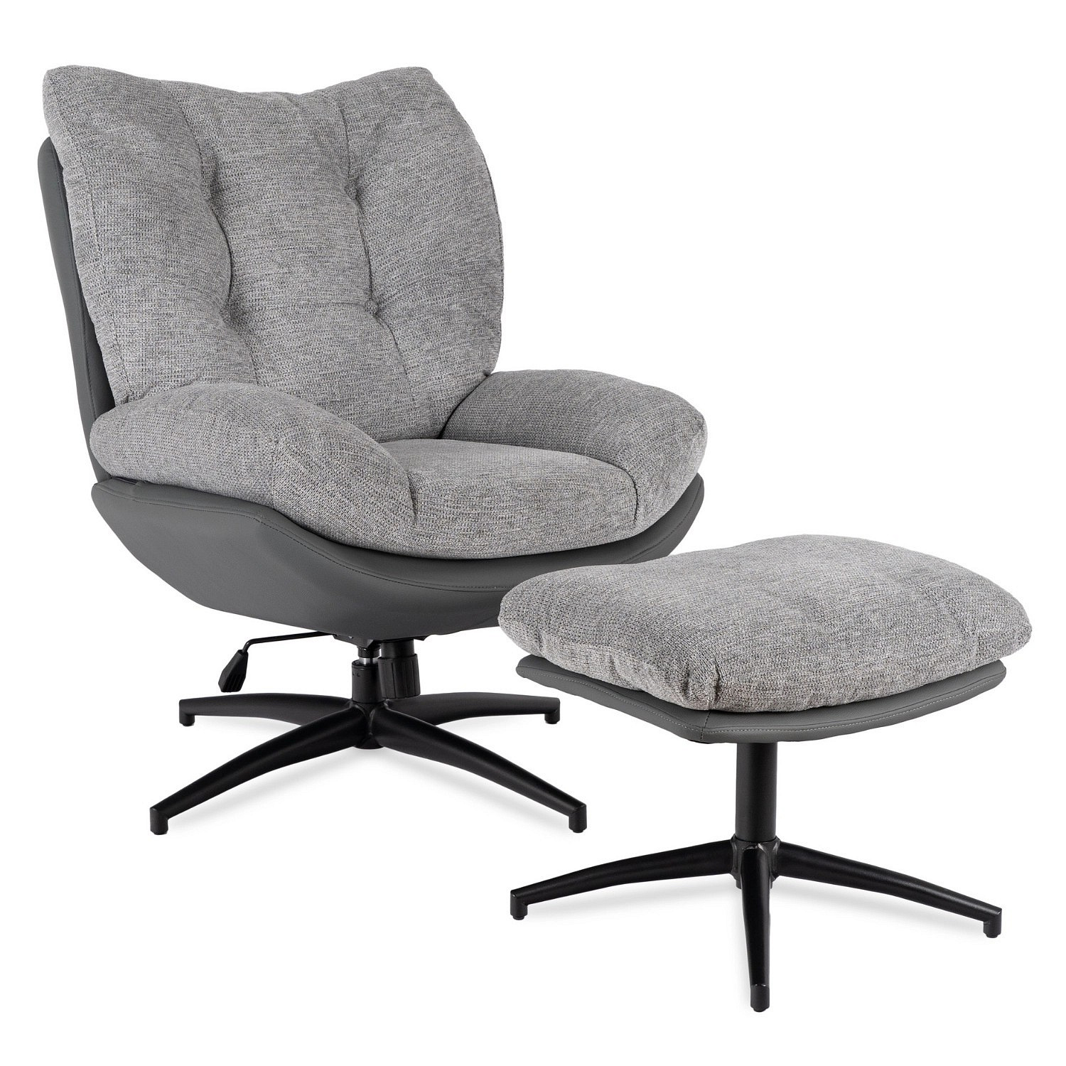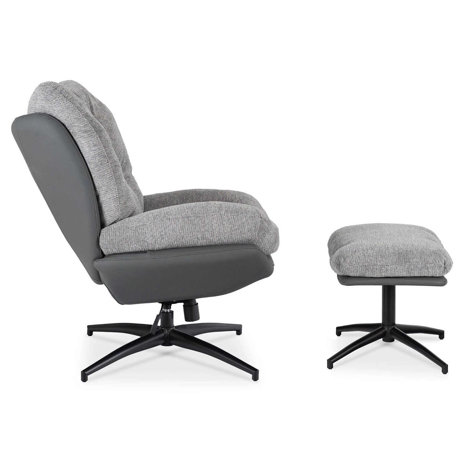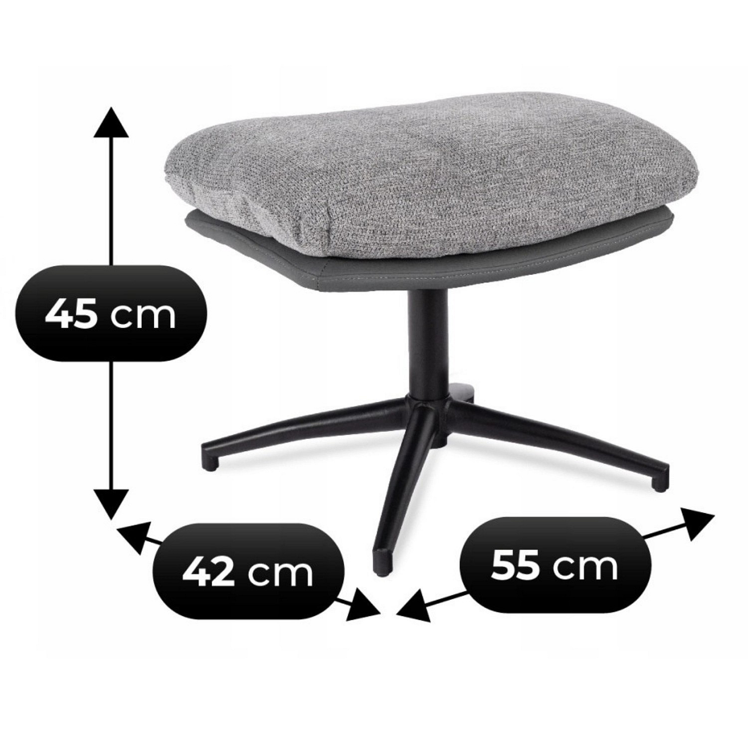 Fotel Wypoczynkowy Obrotowy FREMONT z Podnóżkiem Szary/Czarny