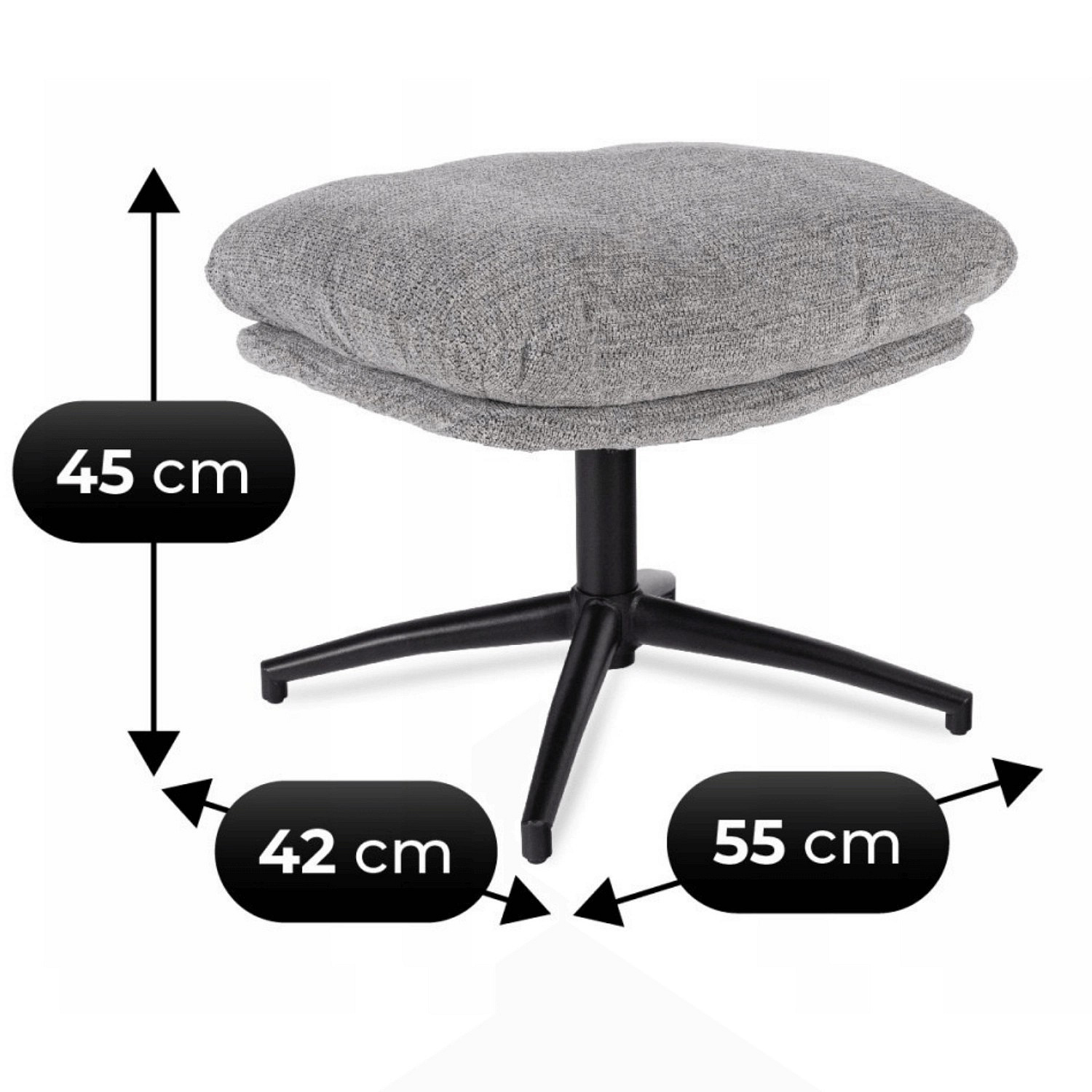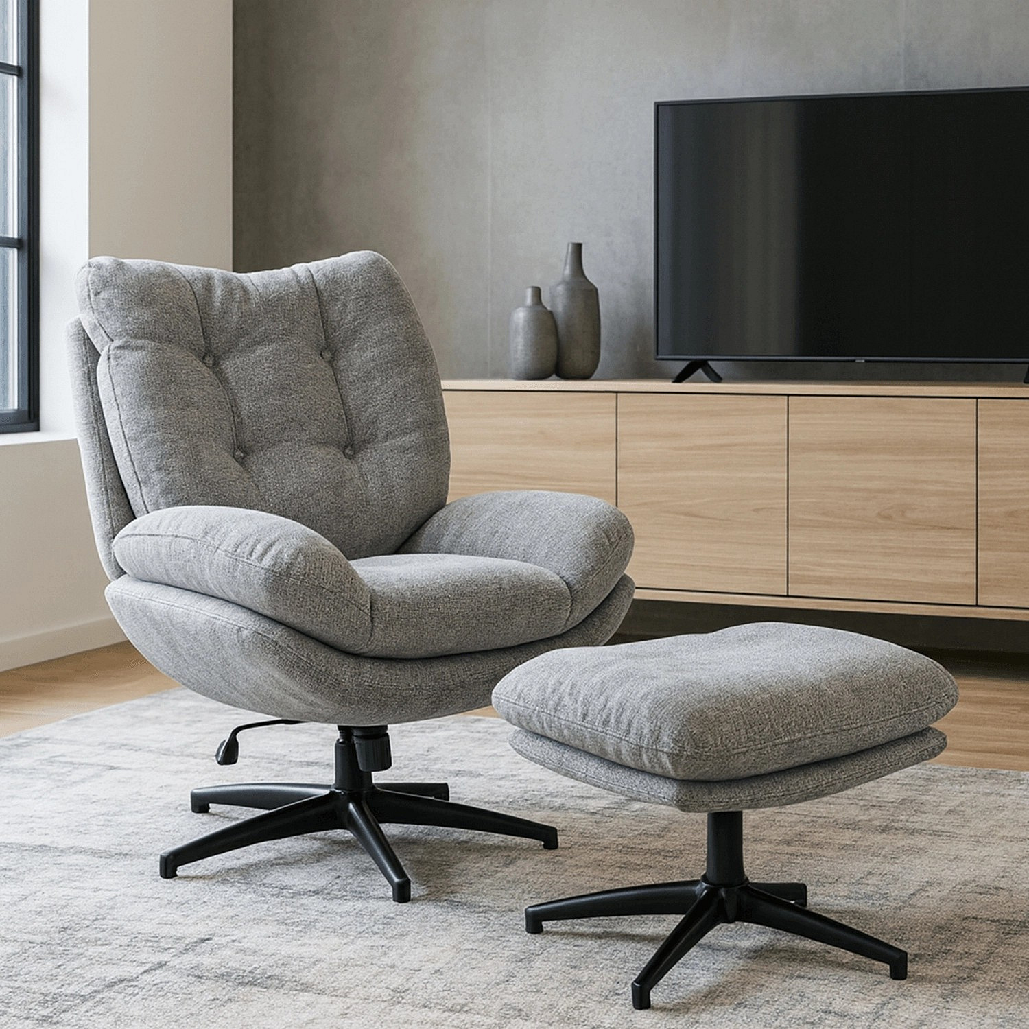 Fotel Wypoczynkowy Obrotowy FREMONT z Podnóżkiem Szary