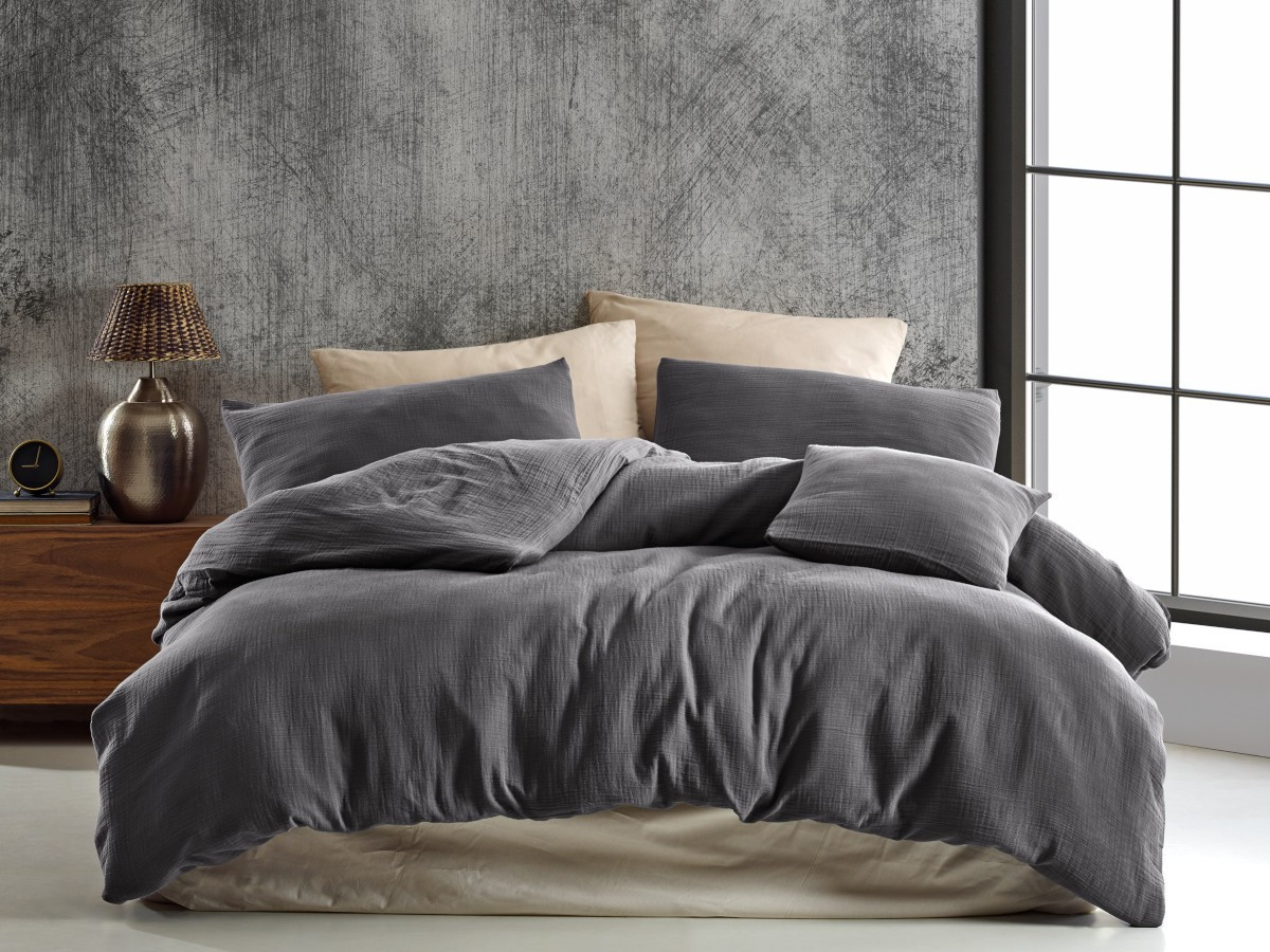 Francouzské mušelínové povlečení tmavě šedé 240x220
