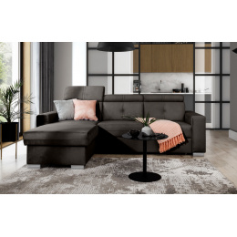 The Fresia corner settee is an L-shaped piece of furniture that looks great and was designed with a blissful rest in mind. In addition, apart from providing aesthetic values, it is also very functional and comfortable, because it is equipped with 3 movable headrests. Fresia is a piece of furniture 247 cm wide, 176 cm deep and 104 cm high. Fresia's wooden and chrome-plated legs, 5.5 centimetres long, are a beautiful decoration and emphasise its elegant look. Another advantage of the corner settee is the bedding container, thanks to which you can keep the living room or guest room tidy. The fold-out function also provides a sleeping area of 204 x 126 cm – a great option in the case of unexpected guests visiting. The mechanism used to open the corner settee is of the very popular and convenient dolphin type. The impressive upholstery from the ELTAP collection adds character and style to the piece of furniture. The offer includes both classic and more original colours. Thanks to the seat filled with T30 foam, the corner settee provides stable support and a comfortable rest. Another important part of upholstered furniture are the springs. The type B corrugated spring was used in the Fresia corner settee, so the seat of this piece of furniture is more flexible and bent, and thus extremely comfortable.
