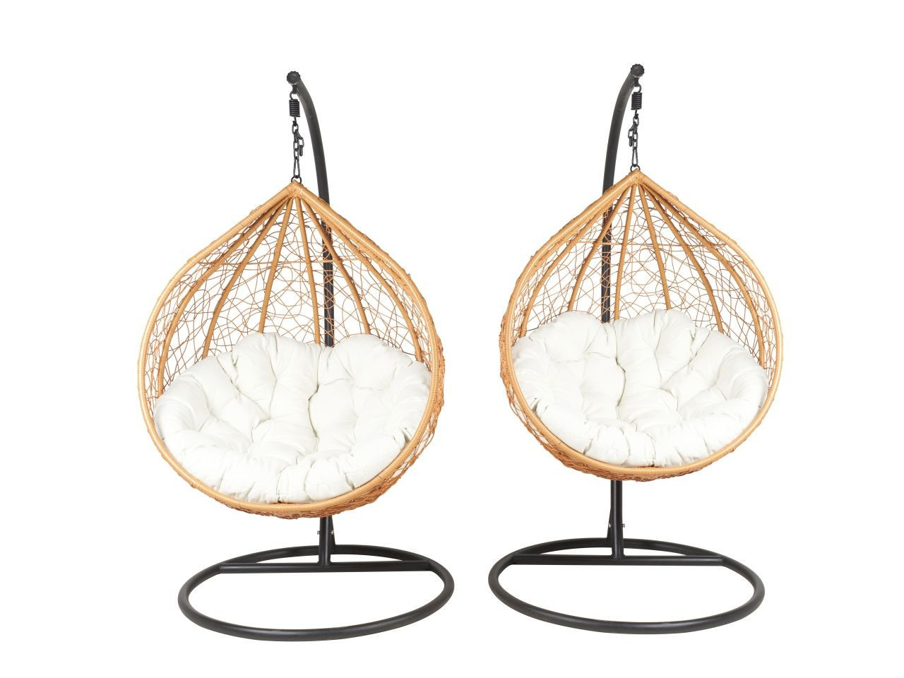 Függő kerti székek - természetes/fekete bézs ülés - 1+1 F-03 készlet