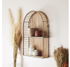 A Bali lekerekített polca fémkeret, fa polcok és dekoratívan átszőtt rattan kombinációja. A Bali érdekes formájú polc boho stílusban lett megőrizve. Színei és anyagai összhangban vannak a természettel.