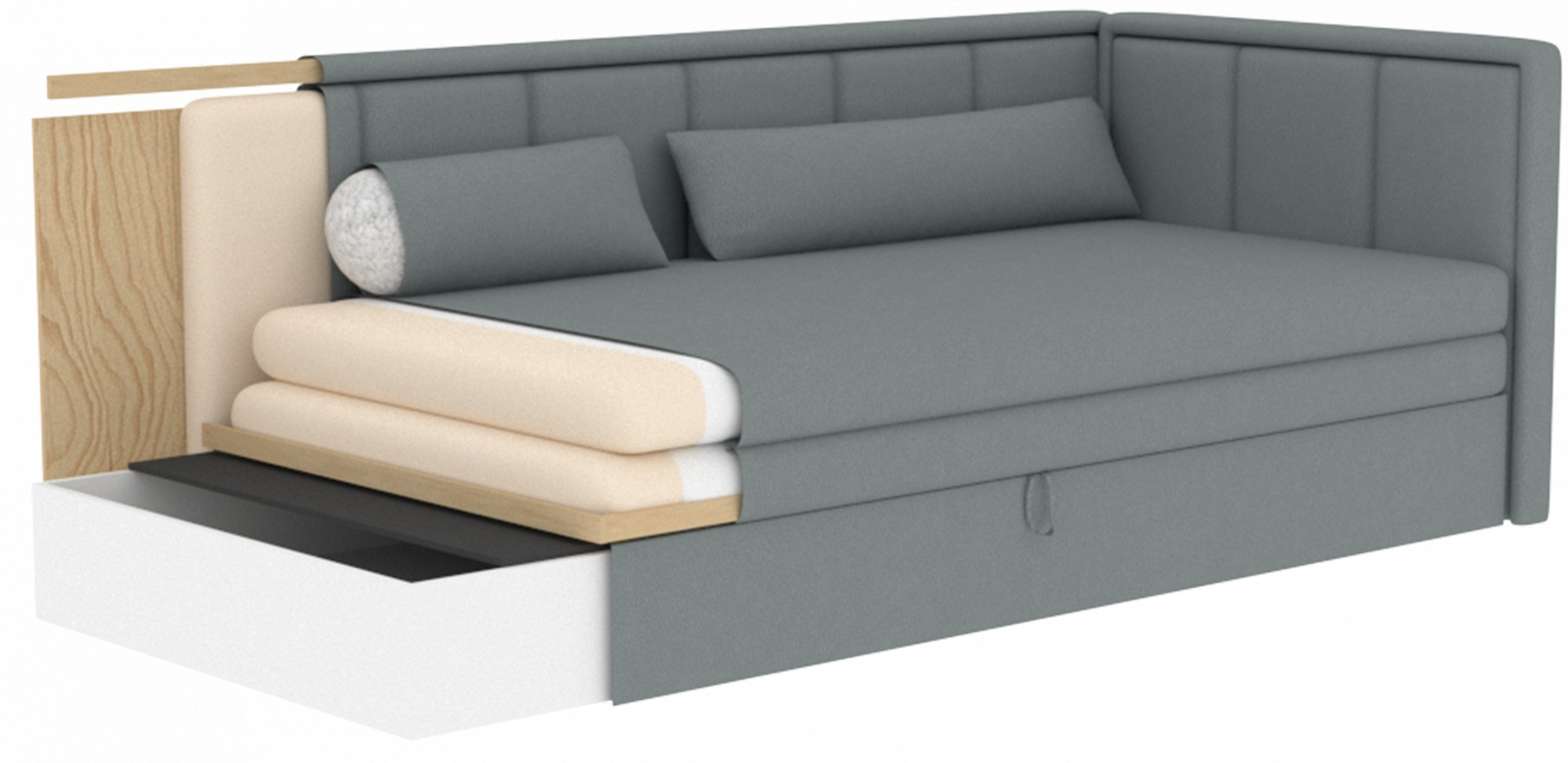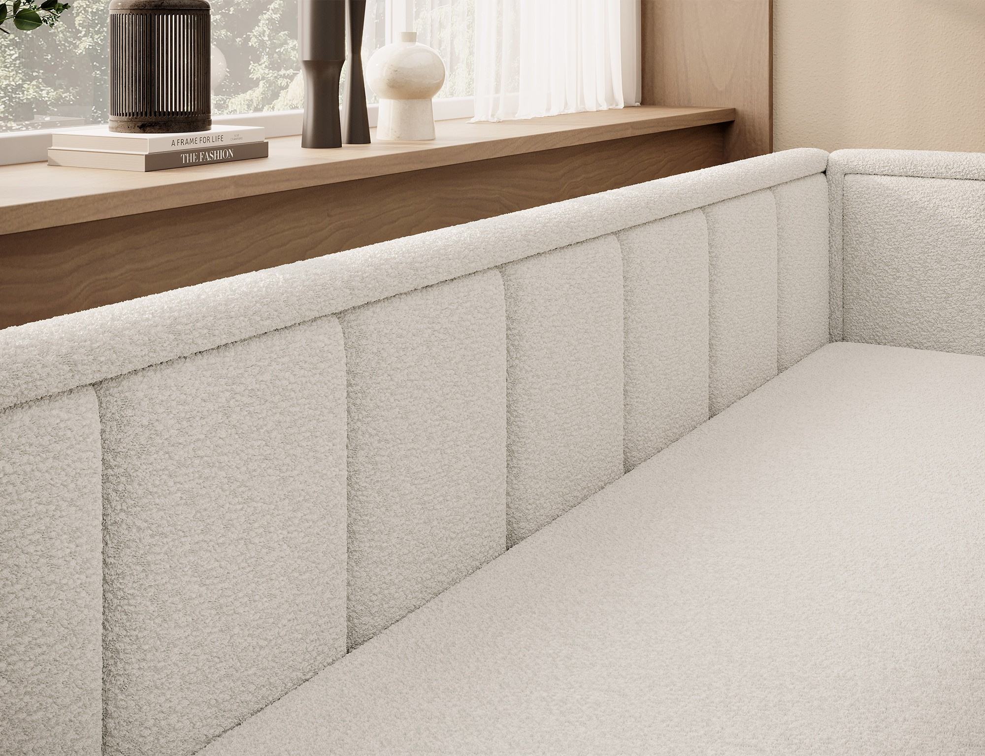 The Fulgeo sofa bed is a solution designed for the demanding, modern user. It offers not only a minimalist and aesthetically pleasing shape but also a functional folding system that allows you to quickly and efficiently transform it into a comfortable bed. This option is perfect for a studio apartment, a living room with a kitchenette, or a youth room. The seat is filled with T2540 polyurethane foam, while the backrest contains T2130 polyurethane foam. It features an easy-to-use sleeping function and a spacious storage compartment for bedding. The lower storage space helps keep textiles organized, making the bed-making process exceptionally smooth. The Fulgeo model is upholstered in an elegant velour fabric with a subtle woven texture that gently shimmers under the light. This material not only boasts a beautiful appearance but also offers high resistance to friction, abrasion, and pilling. Additionally, it does not fade when exposed to light, ensuring that you can enjoy its flawless charm on your new furniture for years to come!