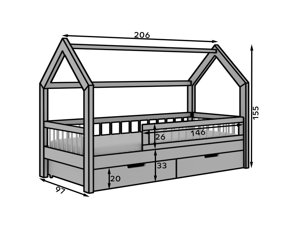 A Galicja ház ágy egy kivételes bútordarab, amely ötvözi a funkcionalitást és a barátságos, skandináv esztétika által inspirált dizájnt. Tömör fából készült, az ágy stabilitást és tartósságot biztosít, miközben meleg, természetes bájt kölcsönöz a belső térnek. Kialakítása házikó formájában ösztönzi a gyermekek képzeletét, és kényelmes helyet teremt a játékhoz és pihenéshez. Ideális központi elemként szolgál a gyerekszobában, biztosítva a kényelmes alvást és inspirálva a kreatív játékra. Az egyszerű forma és a természetes kivitelezés miatt a Galicja ágy harmonikusan illeszkedik bármilyen belső térbe, függetlenül az elrendezés stílusától. Matracok készletben.