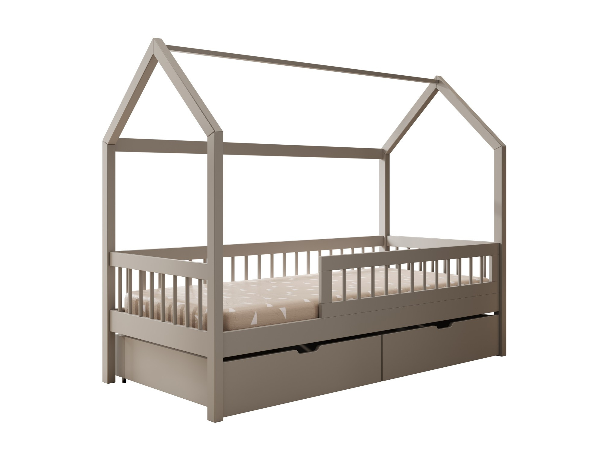 A Galicja ház ágy egy kivételes bútordarab, amely ötvözi a funkcionalitást és a barátságos, skandináv esztétika által inspirált dizájnt. Tömör fából készült, az ágy stabilitást és tartósságot biztosít, miközben meleg, természetes bájt kölcsönöz a belső térnek. Kialakítása házikó formájában ösztönzi a gyermekek képzeletét, és kényelmes helyet teremt a játékhoz és pihenéshez. Ideális központi elemként szolgál a gyerekszobában, biztosítva a kényelmes alvást és inspirálva a kreatív játékra. Az egyszerű forma és a természetes kivitelezés miatt a Galicja ágy harmonikusan illeszkedik bármilyen belső térbe, függetlenül az elrendezés stílusától.