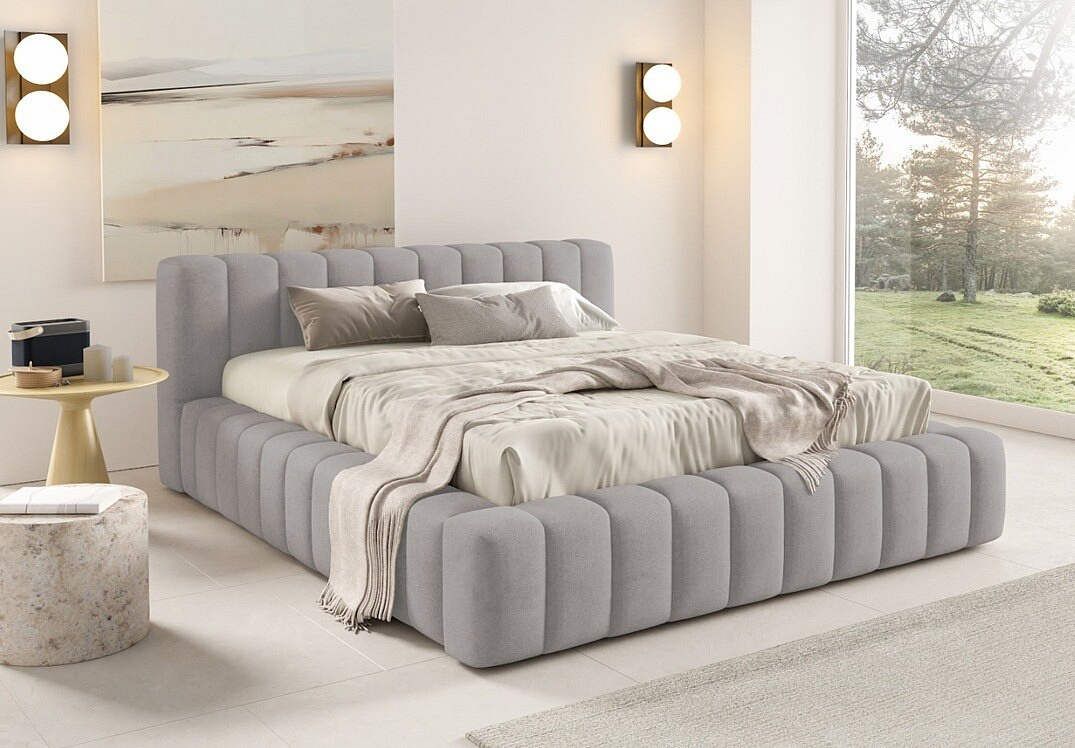 A GINO ágy kiváló minőségű kárpitozott anyaggal van bevonva, amely luxus és elegancia érzetet kölcsönöz a belső térnek. Finom textúrája és tartóssága hosszú élettartamot és könnyű karbantartást biztosít. A termék paramétereiben megadott fekvőfelület méreteivel ideális választás azok számára, akik tágas és kényelmes ágyat szeretnének.