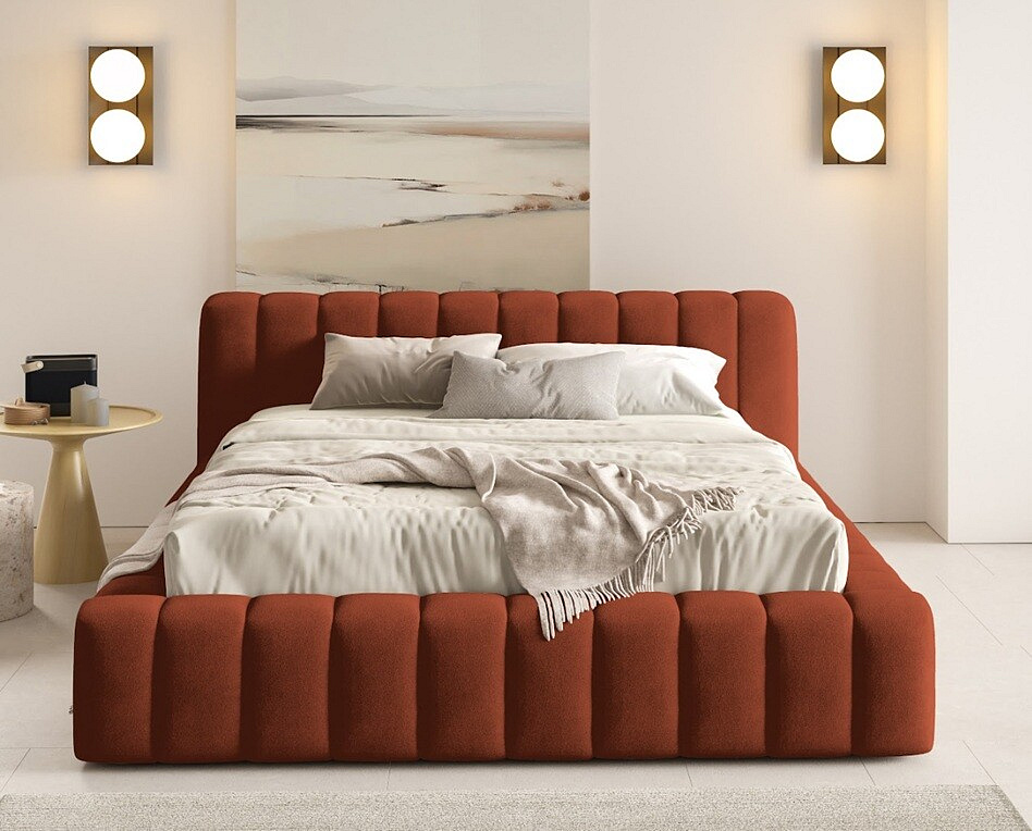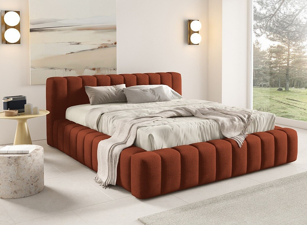 A GINO ágy kiváló minőségű kárpitozott anyaggal van bevonva, amely luxus és elegancia érzetet kölcsönöz a belső térnek. Finom textúrája és tartóssága hosszú élettartamot és könnyű karbantartást biztosít. A termék paramétereiben megadott fekvőfelület méreteivel ideális választás azok számára, akik tágas és kényelmes ágyat szeretnének.