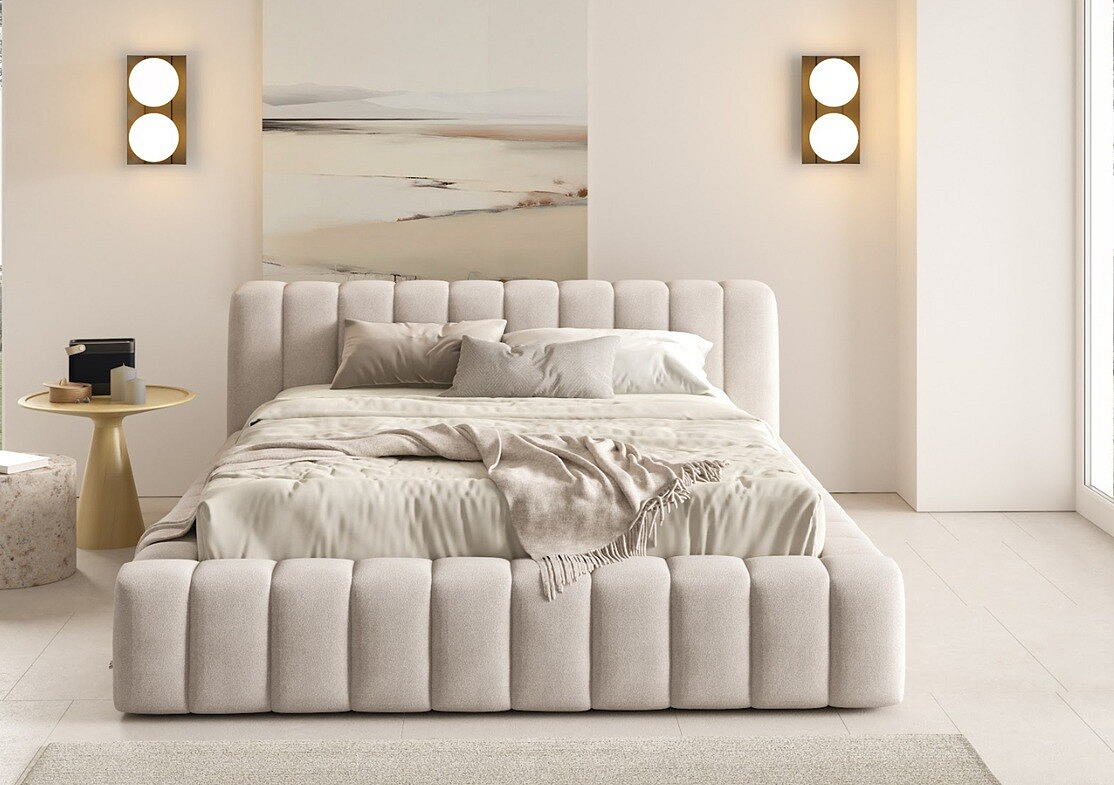 A GINO ágy kiváló minőségű kárpitozott anyaggal van bevonva, amely luxus és elegancia érzetet kölcsönöz a belső térnek. Finom textúrája és tartóssága hosszú élettartamot és könnyű karbantartást biztosít. A termék paramétereiben megadott fekvőfelület méreteivel ideális választás azok számára, akik tágas és kényelmes ágyat szeretnének.