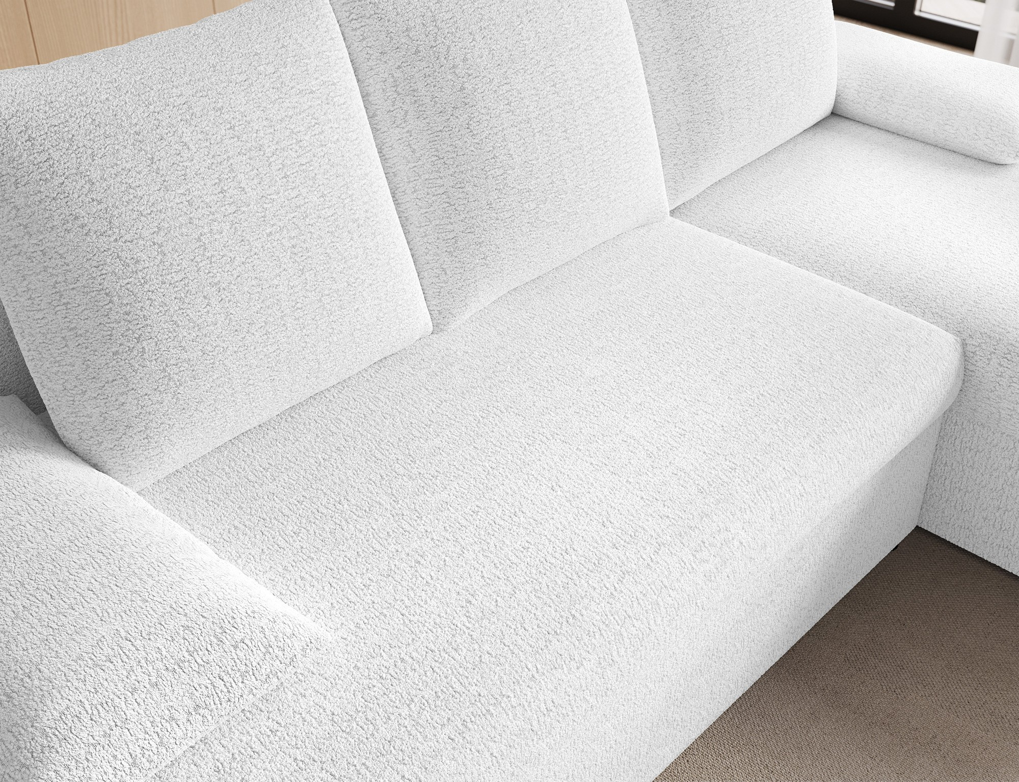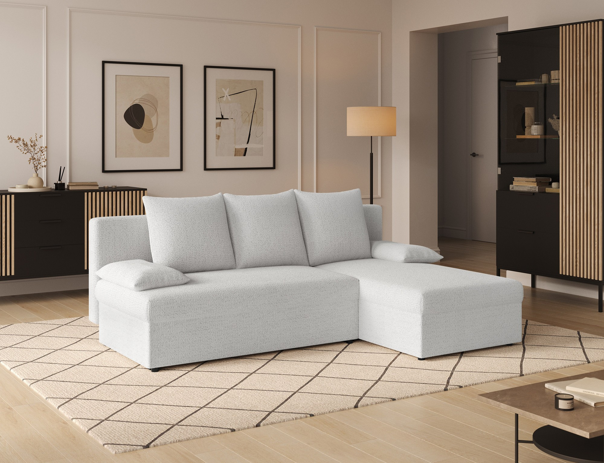 Gino is an elegant, classic and simple solid corner sofa, which is a compact multifunctional furniture with dimensions of 201 x 143 x 90 cm. This comfortable piece of furniture will provide its user with maximum comfort on a daily basis, convenience at night and overall satisfaction - regardless of the time. The 201 x 124 cm sleeping surface allows you to enjoy exceptional softness in daily use. An additional advantage is the spacious bedding container. The intuitive system of unfolding the furniture in the form of a sliding bottom, allows you to quickly adjust the corner sofa to your needs. Positive sensations are enhanced by the way the seat is made with T30 foam, which provides softness with simultaneous flexibility. Such filling minimizes the risk of unsightly indentations, damage and abrasions even during prolonged use. The minimalist design of the Gino corner charms with its simplicity, geometric shape and will certainly fit into any possible interior.