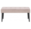 A Glory előszobapad kényelmes ülőhely, amely nemcsak a cipő felvételében segít. A bútor rendkívül kellemes, puha ülőpárnával van felszerelve, amely habból készült, és tapintásra kellemes, rózsaszín árnyalatú bársonyszövettel van bevonva. Érdekes steppelés az ülésen glamour stílusú karaktert kölcsönöz a padnak. A bútor kárpitozásához használt szövet VIC dusty rose 18. Az egész szerkezet magas, keskenyedő lábakon helyezkedik el, amelyek porfestett fémből készültek. A pad lehet ülőhely a váróteremben, gyerekpad vagy pad a szálloda előcsarnokában. A pad tömege csak 8,3 kg A karton méretei: 97 x 14,5 x 38,5 cm Ülésmagasság: 45 cm Ülésszélesség: 95 cm Ülésmélység: 38 cm