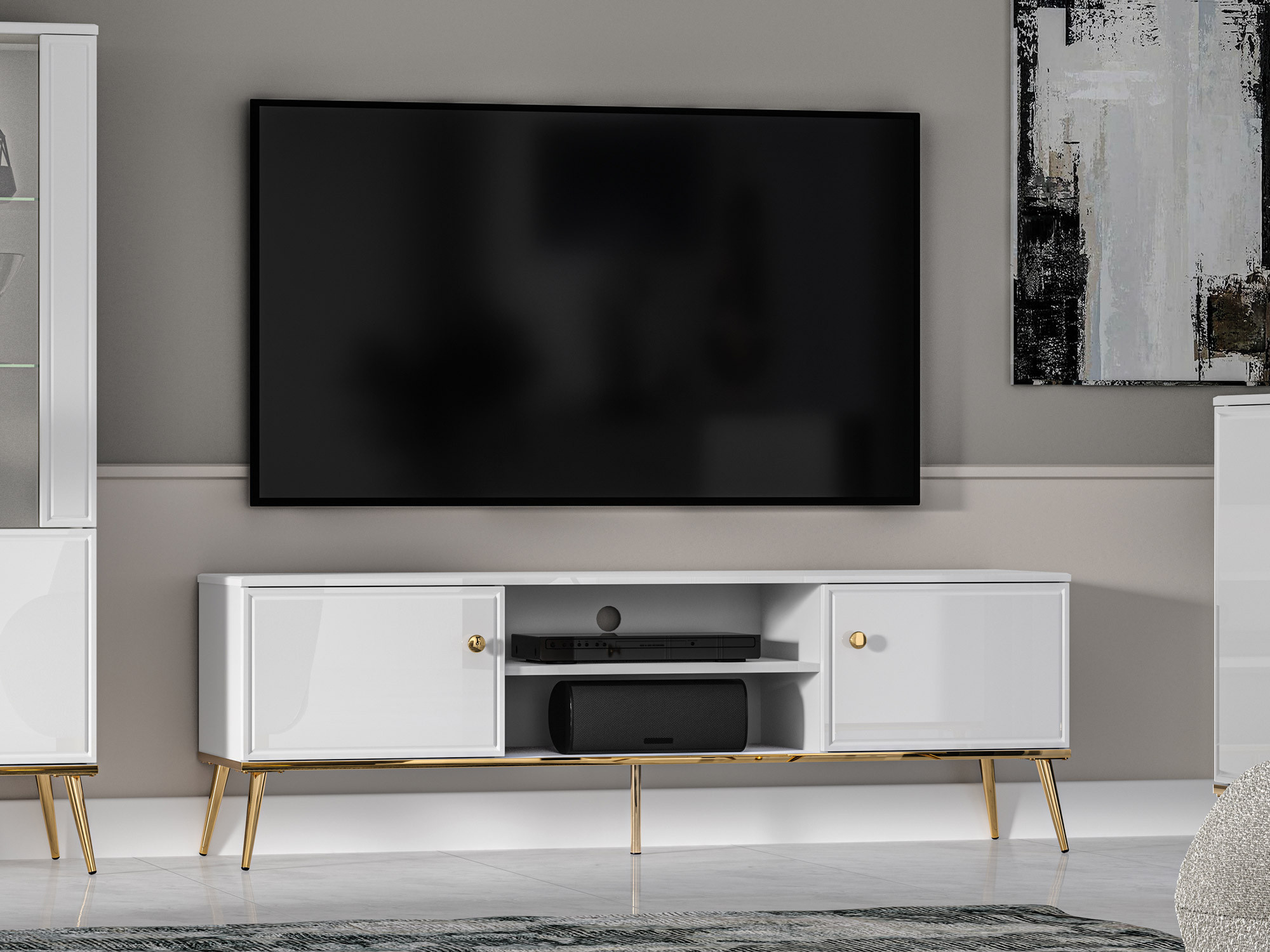Szafka GOLDIN 06 pozwoli na idealne umiejscowienie telewizora, który z pewnością będzie towarzyszyć całej rodzinie podczas wieczornych seansów. Szafka dzięki swojej pojemności będzie doskonałym miejscem do przechowywania akcesoriów do telewizora bądź konsoli. Ponadto utrzymanie czystości dzięki wysokim nóżkom szafki nie będzie stanowiło najmniejszego problemu.