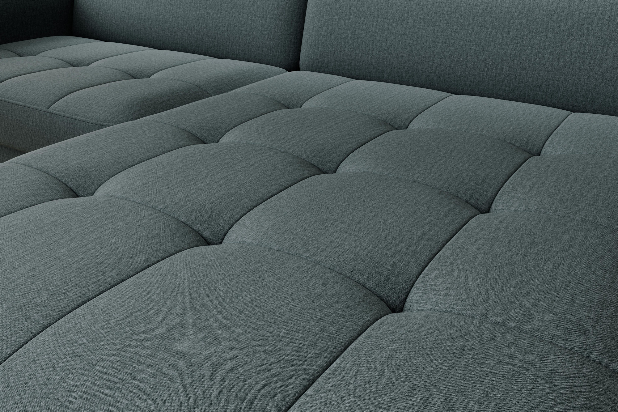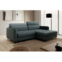 The Gomsi corner settee with the dimensions of 228x165x100 centimetres will perfectly complement the interior. Quilted seats and black metal legs give it a unique appearance, while the upholstered back of the product makes it universal. It will perfectly fit into both modern and elegant interiors. Thanks to the sleeping function with the area of 128x200 centimetres you can take a breath and relax while watching your favourite movies and series. The comfort of your everyday rest will be ensured not only by the sleeping function, but also by the highly elastic HR foam and high-quality B-type corrugated springs used in the seats, providing them with springiness. Another convenient element is the bedding container with the dimensions of 117x97x15 cm, which will help you store additional blankets, pillows and bedding.