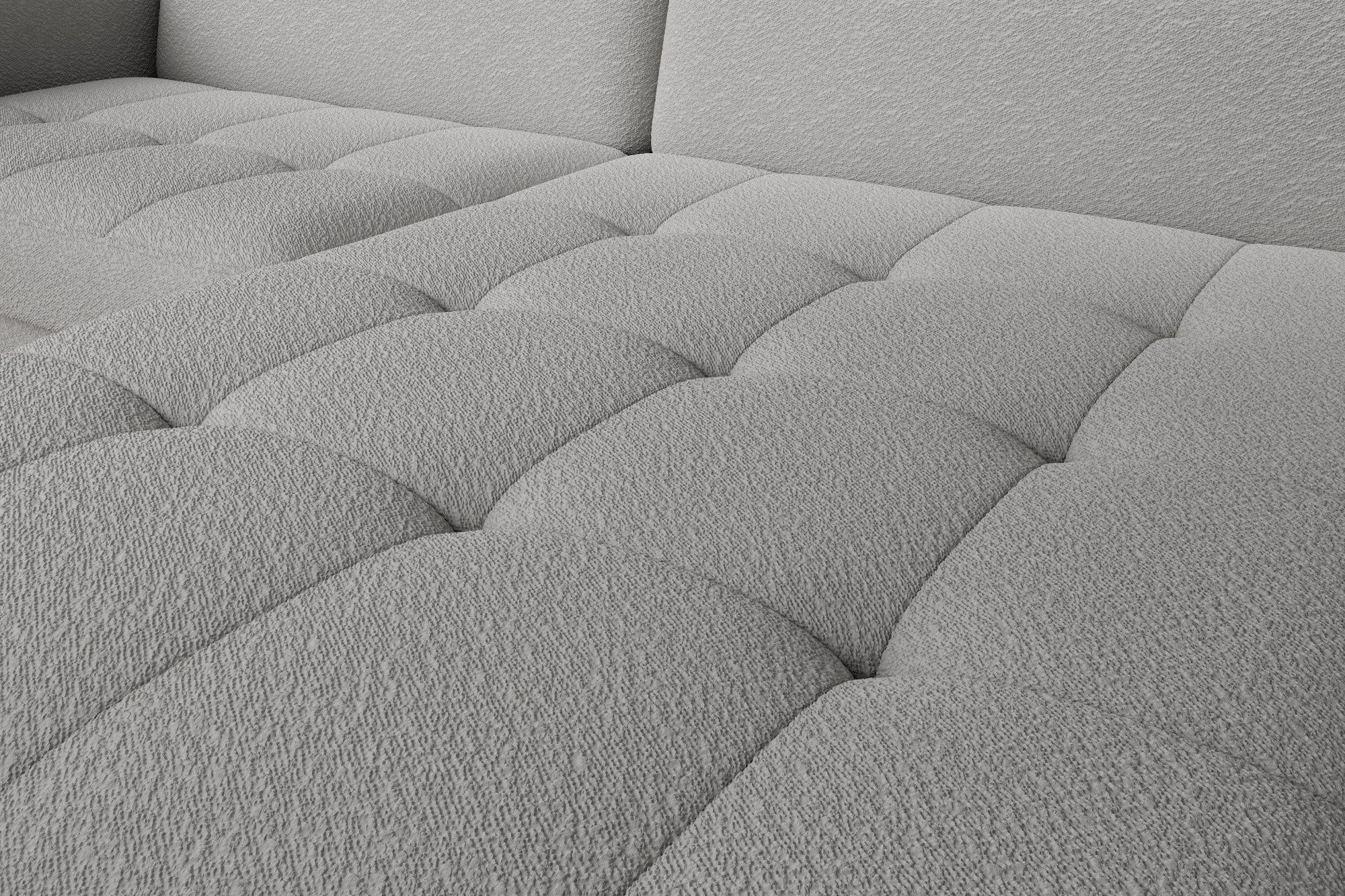 The Gomsi corner settee with the dimensions of 228x165x100 centimetres will perfectly complement the interior. Quilted seats and black metal legs give it a unique appearance, while the upholstered back of the product makes it universal. It will perfectly fit into both modern and elegant interiors. Thanks to the sleeping function with the area of 128x200 centimetres you can take a breath and relax while watching your favourite movies and series. The comfort of your everyday rest will be ensured not only by the sleeping function, but also by the highly elastic HR foam and high-quality B-type corrugated springs used in the seats, providing them with springiness. Another convenient element is the bedding container with the dimensions of 117x97x15 cm, which will help you store additional blankets, pillows and bedding.