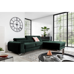 Grayson is a multifunctional, elegant and spacious L-shaped corner sofa that can become a luxurious finishing touch to any living room. It is a high-quality piece of furniture, synonymous with comfort and class, thanks to, among other things, the innovative T30+HR foam, which increases the elasticity and resilience of the seat, and is resistant to any kind of deformation. Behind the Grayson corner sofa, measuring 278 x 205 x 92 cm, there is not only comfort, but also well-slept nights, thanks to its large sleeping area - 125 x 216 cm. The type of unfolding mechanism "dolphin" allows you to simply and intuitively unfold the corner sofa, which transforms into a spacious bed. For ease of use, it has also been equipped with a practical linen storage compartment, which is sure to make household cleaning easier. Our Grayson model has a unique, modern design, is springy, durable, and besides, it is also characterized by above-average comfort, solid construction, adjustable, movable headrests and a contoured backrest. If you are curious about what else our Grayson furniture has to offer - we invite you to test this corner sofa. It will certainly be a 100% right choice.