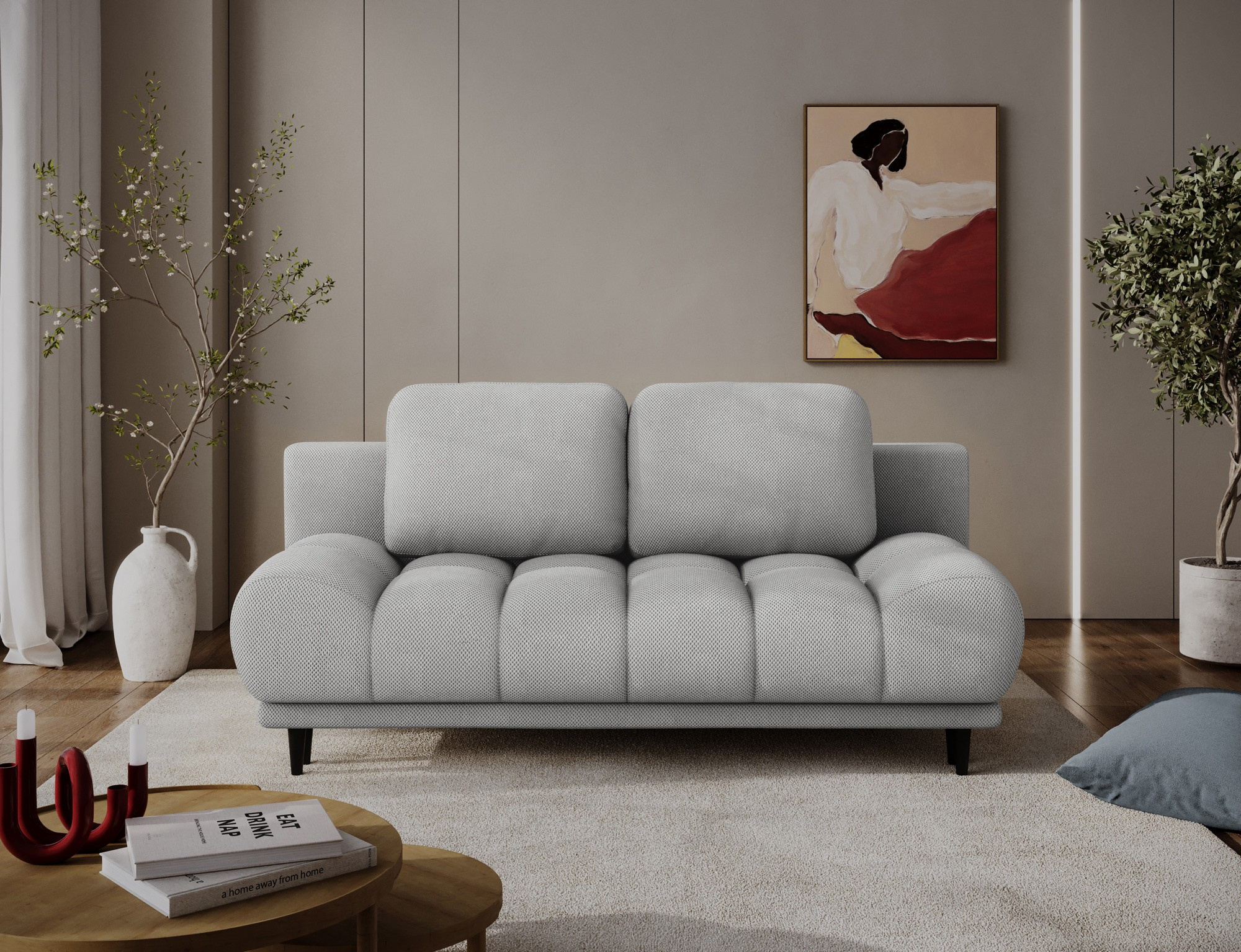 The Guavio sofa is a modern and functional piece of furniture designed for everyday comfort. Its elegant, rounded form and soft cushions perfectly complement contemporary interior designs. The sofa measures 210 × 91 × 97 cm and weighs 72.6 kg, ensuring a stable construction. The seat is filled with a Type B wave spring and HR3030 foam for elasticity and comfort, while the backrest consists of cushions filled with foam granulate that adapt to the body. The sofa includes a sleeping function with a surface of 140 × 210 cm and a DL mechanism with a spring that supports easy unfolding into a comfortable bed. An additional bedding container helps maintain order. Guavio is the perfect combination of design, practicality, and comfort, created for modern interiors.