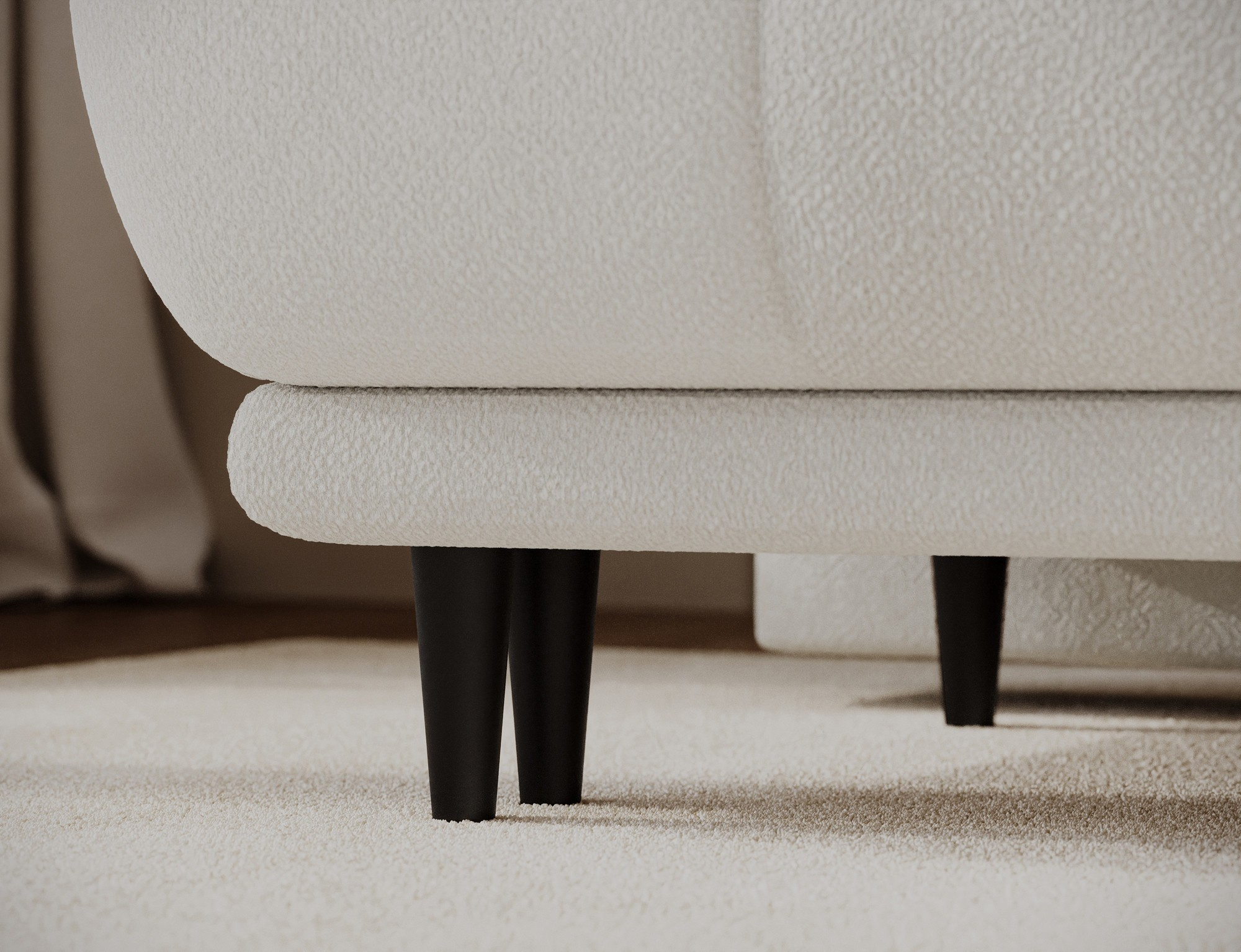 The Guavio sofa is a modern and functional piece of furniture designed for everyday comfort. Its elegant, rounded form and soft cushions perfectly complement contemporary interior designs. The sofa measures 210 × 91 × 97 cm and weighs 72.6 kg, ensuring a stable construction. The seat is filled with a Type B wave spring and HR3030 foam for elasticity and comfort, while the backrest consists of cushions filled with foam granulate that adapt to the body. The sofa includes a sleeping function with a surface of 140 × 210 cm and a DL mechanism with a spring that supports easy unfolding into a comfortable bed. An additional bedding container helps maintain order. Guavio is the perfect combination of design, practicality, and comfort, created for modern interiors.