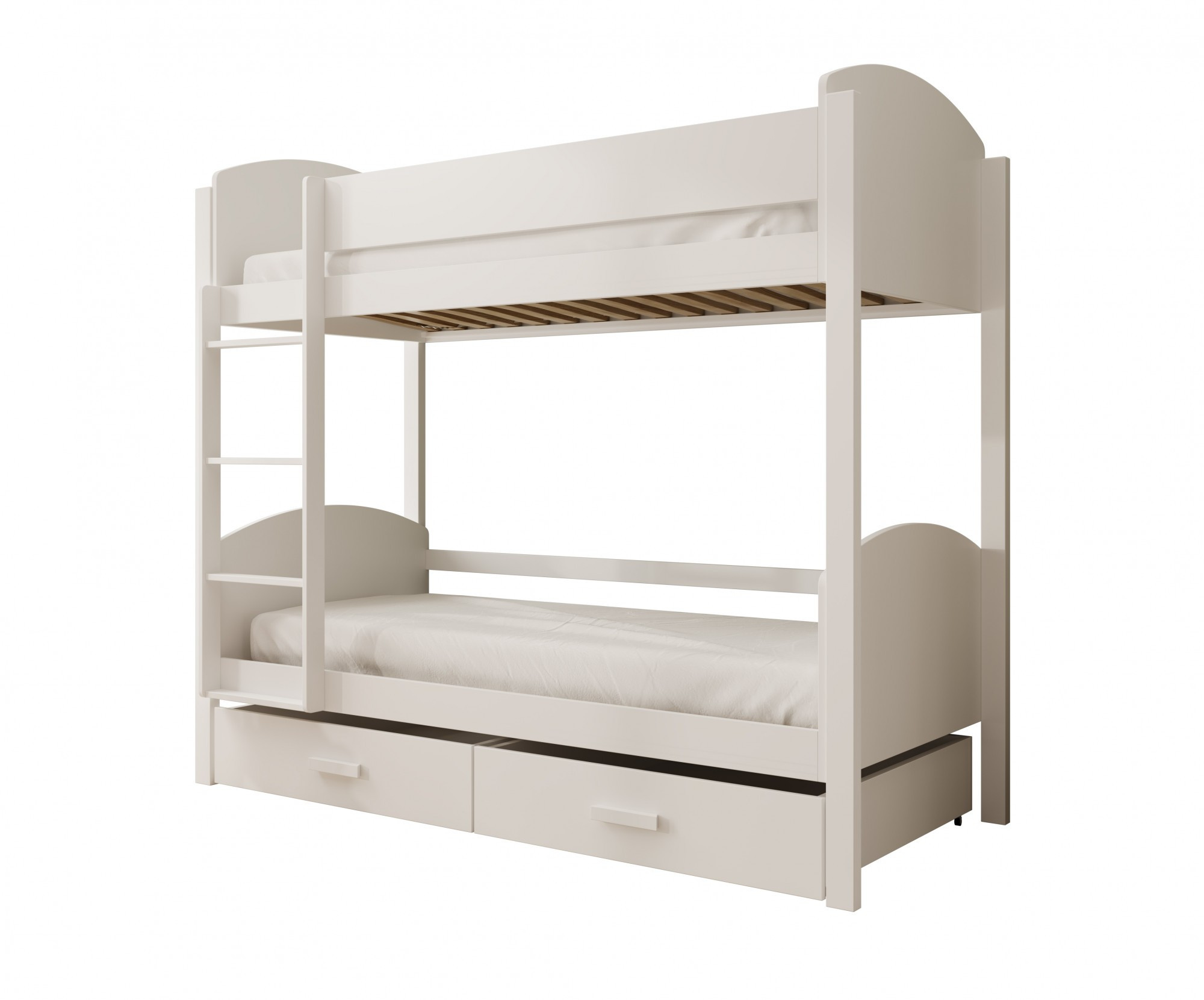 A Jori emeletes ágy nagyszerű választás azoknak a szülőknek, akik funkcionális és stílusos megoldást keresnek a gyerekszobába. Átgondolt kialakításának köszönhetően nemcsak kényelmes alvóhelyet biztosít két személy számára, hanem további tárolóhelyet is. A két tágas fiók az alsó ágy alatt ideális hely ágyneműk, játékok, ruhák vagy más gyerek kiegészítők tárolására, ami segít rendet tartani a szobában. A Jori ágy a modern dizájnt ötvözi a magas színvonalú kidolgozással, ami biztosítja, hogy sok éven át szolgálni fog. A szilárd szerkezet és a biztonságos, lekerekített élek kényelmet és biztonságot nyújtanak a kisgyermekek számára. Ennek köszönhetően az ágy mind a fiú, mind a lány szobájába illik, otthonos és funkcionális légkört teremtve a belső térben.