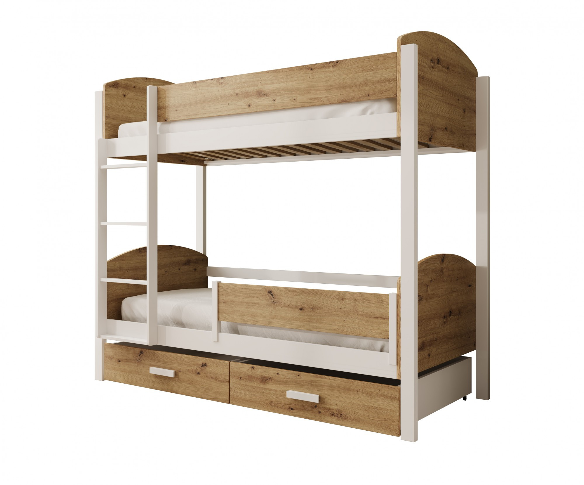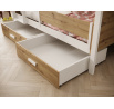 A Jori emeletes ágy leesésgátlóval kiváló választás azoknak a szülőknek, akik funkcionális és stílusos megoldást keresnek a gyerekszobába. Átgondolt kialakításának köszönhetően nemcsak kényelmes alvóhelyet biztosít két személy számára, hanem további tárolóhelyet is. A két tágas fiók az alsó ágy alatt ideális hely ágyneműk, játékok, ruhák vagy más gyerek kiegészítők tárolására, ami segít rendet tartani a szobában. A Jori ágy korláttal ötvözi a modern dizájnt a magas színvonalú kidolgozással, ami biztosítja, hogy sok éven át szolgálni fog. Masszív szerkezet és biztonságos, lekerekített élek biztosítják a kényelmet és biztonságot a kisgyermekek számára, míg a kiegészítő védőkorlát garantálja a nyugodt alvást kiesés kockázata nélkül. Ennek köszönhetően az ágy mind a fiú, mind a lány szobájába illik, otthonos és funkcionális légkört teremtve a belső térben.