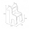 Egy unikornis alakú gyerek szék illik egy kislány szobájába, aki szereti a varázslatos lovak motívumait. Alacsony, gyerek méretre szabott szék MDF lapból készült, amelyet egyszarvú formára vágtak. A szék alapja négy láb. A szék egyszerű összeszerelést igényel. Max. szék terhelhetősége 60 kg. Kartondoboz méretei: 35x48x46 cm. Max 4 db kartononként