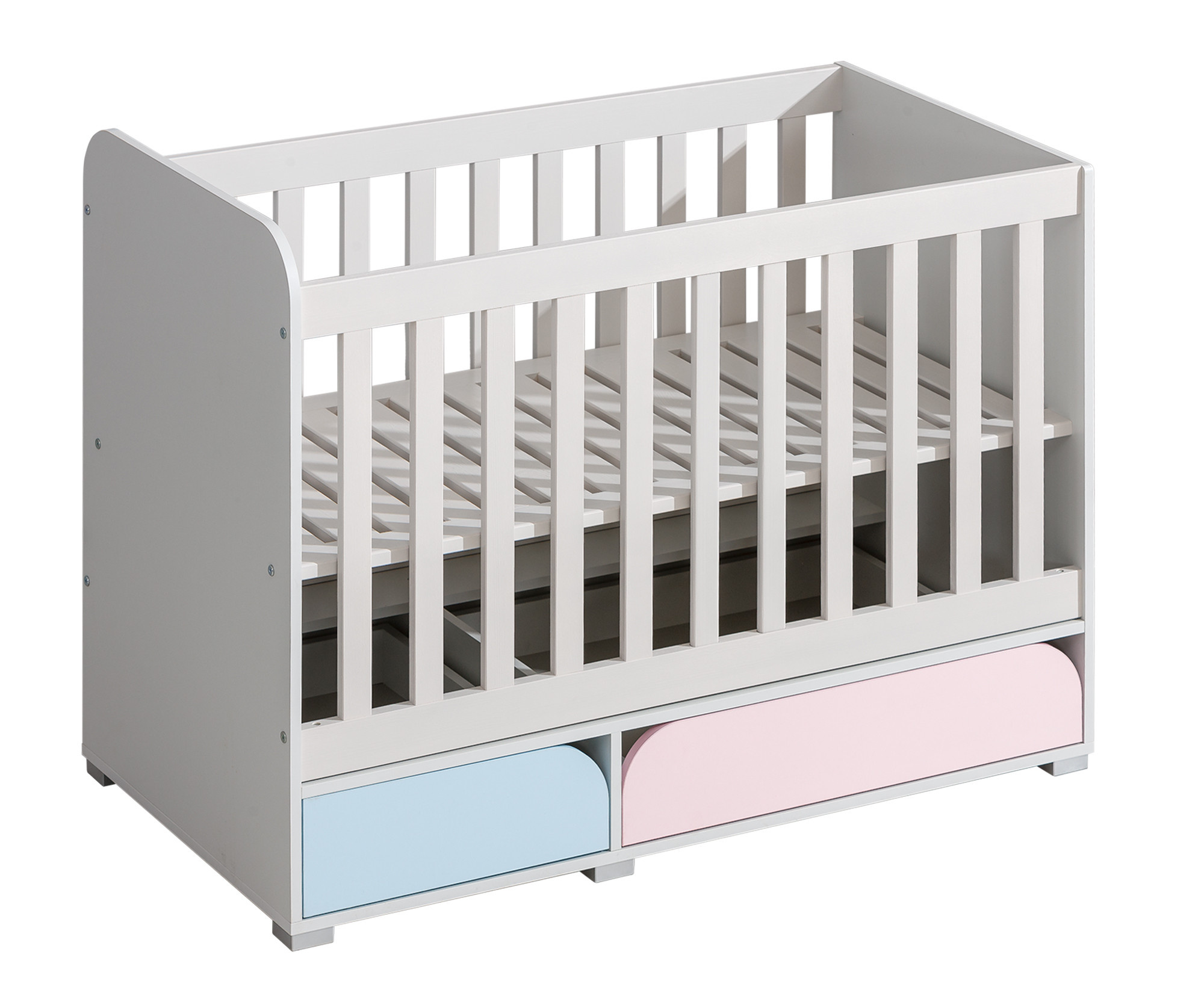 A Mimo rendszerből származó gyerekágy világosszürke színben készül, halványkékkel és rózsaszínnel kombinálva.