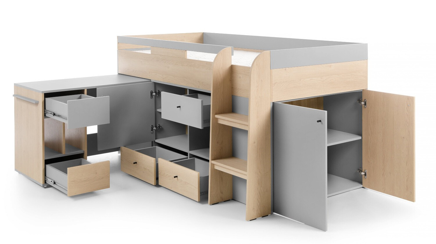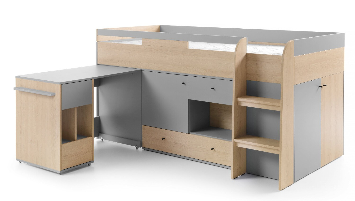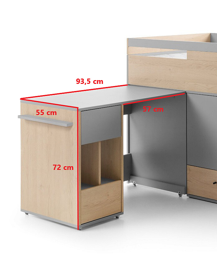 - Az ágy tartalmazza a kihúzható íróasztalt és a komódokat