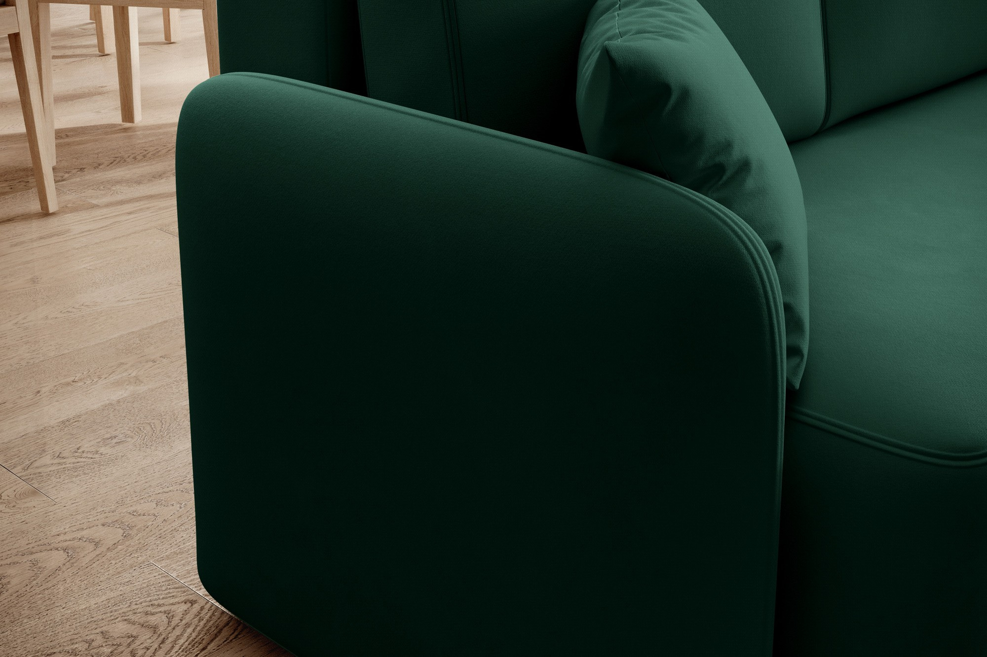 The Hadson corner is an elegant piece of furniture that will add a modern character to your interior. With an impressive width of 206 cm and a depth of 150 cm, it provides a spacious area for the whole family to relax. With a height of 89 cm with cushions, Hadson combines comfort with aesthetics. The seat depth of 49 cm and seat height of 47 cm offer a comfortable place to rest. Hadson can also serve as a bed with an impressive area of 115x184 cm, perfect for guests. The sturdy 2.5 cm high legs add stability to the entire construction. The backrest height of 42 cm supports comfort during use. The DL mechanism allows for easy transformation of the corner into a comfortable sleeping space. Hadson is not only stylish but also functional, bringing elegance to every room.