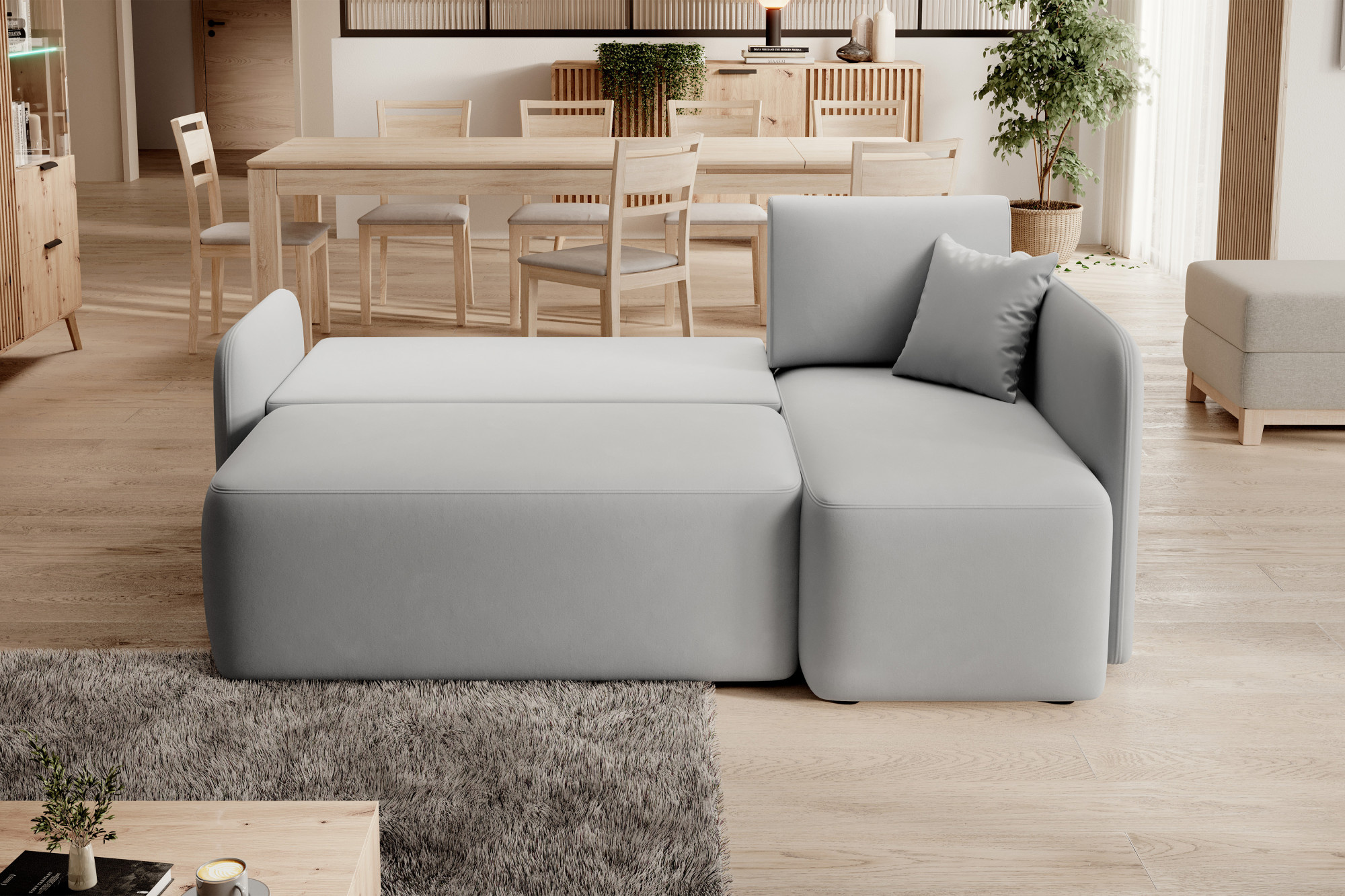 The Hadson corner is an elegant piece of furniture that will add a modern character to your interior. With an impressive width of 206 cm and a depth of 150 cm, it provides a spacious area for the whole family to relax. With a height of 89 cm with cushions, Hadson combines comfort with aesthetics. The seat depth of 49 cm and seat height of 47 cm offer a comfortable place to rest. Hadson can also serve as a bed with an impressive area of 115x184 cm, perfect for guests. The sturdy 2.5 cm high legs add stability to the entire construction. The backrest height of 42 cm supports comfort during use. The DL mechanism allows for easy transformation of the corner into a comfortable sleeping space. Hadson is not only stylish but also functional, bringing elegance to every room.