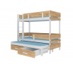 Háromszemélyes emeletes ágy ETAPO 180x80 Fehér+Arany Tölgy