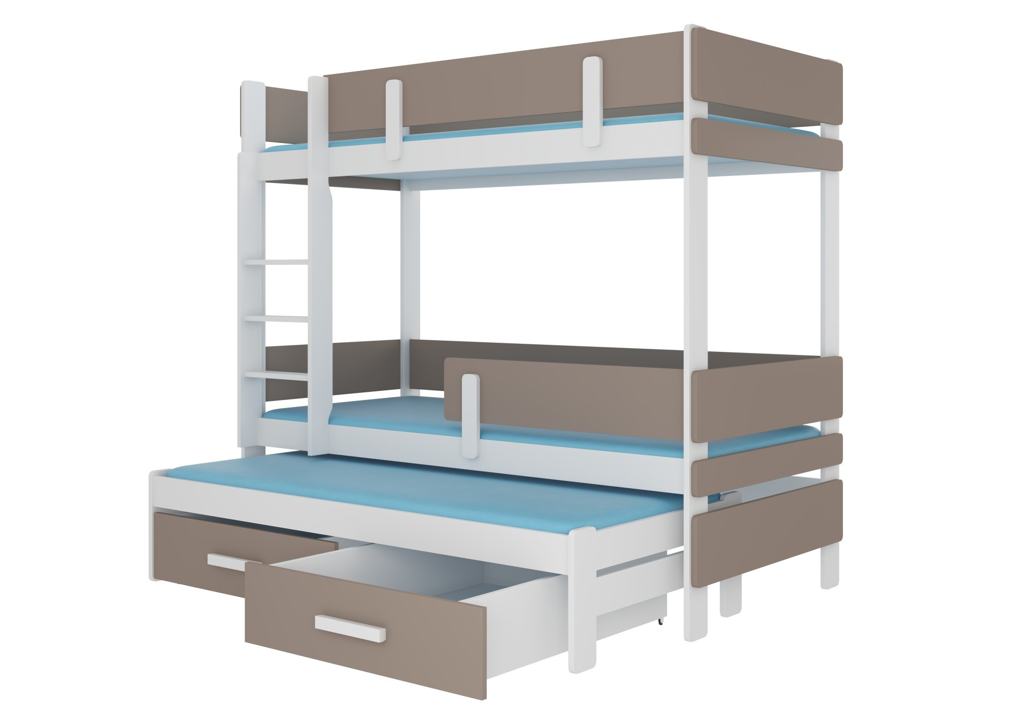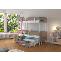 Háromszemélyes emeletes ágy ETAPO 180x80 Fehér+Trüffel