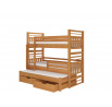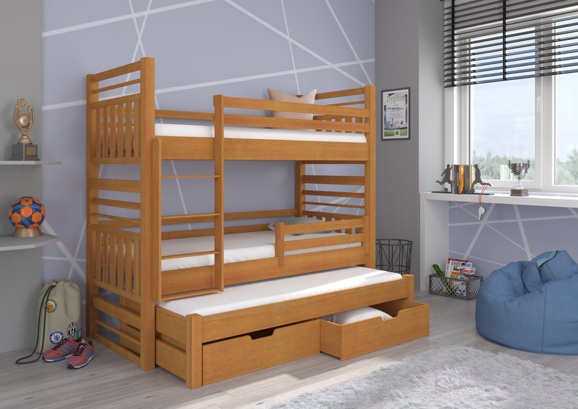 Háromszemélyes emeletes ágy HIPPO 200x90 Éger
