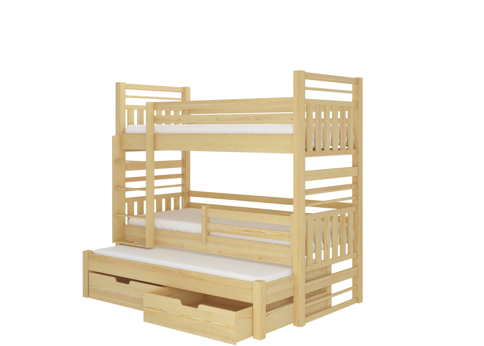 Háromszemélyes emeletes ágy HIPPO 200x90 Fenyő Természetes