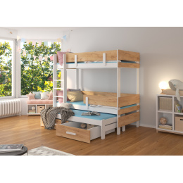 Háromszemélyes emeletes ágy matracokkal ETAPO 180x80 Fehér+Arany Tölgy