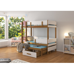 Háromszemélyes emeletes ágy matracokkal ETAPO 180x80 Tölgy+Fehér