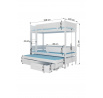 Az ETAPO háromszintes emeletes ágy remek ötlet a helytakarékosságra egy kis gyerekszobában. A bútor tartalmaz egy lépcsős létrát és két tágas és funkcionális fiókot az ágynemű számára. Ezenkívül két szinten korlátokat szereltek fel, amelyek növelik a biztonságot alvás közben. Az ággyal együtt kap egy készlet három darab 8 cm vastag habszivacs matracot.