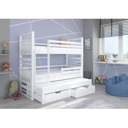 Háromszemélyes emeletes ágy matracokkal HIPPO 180x80 Fehér