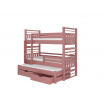 Háromszemélyes emeletes ágy matracokkal HIPPO 200x90 Rózsaszín