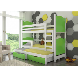 Háromszemélyes emeletes ágy matracokkal LETICIA Fehér+Zöld