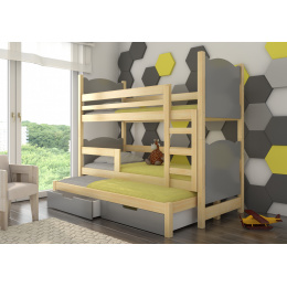 Háromszemélyes emeletes ágy matracokkal LETICIA Pine+Gray