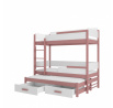 Háromszemélyes emeletes ágy matracokkal QUEEN 180x80 Rózsaszín+Fehér
