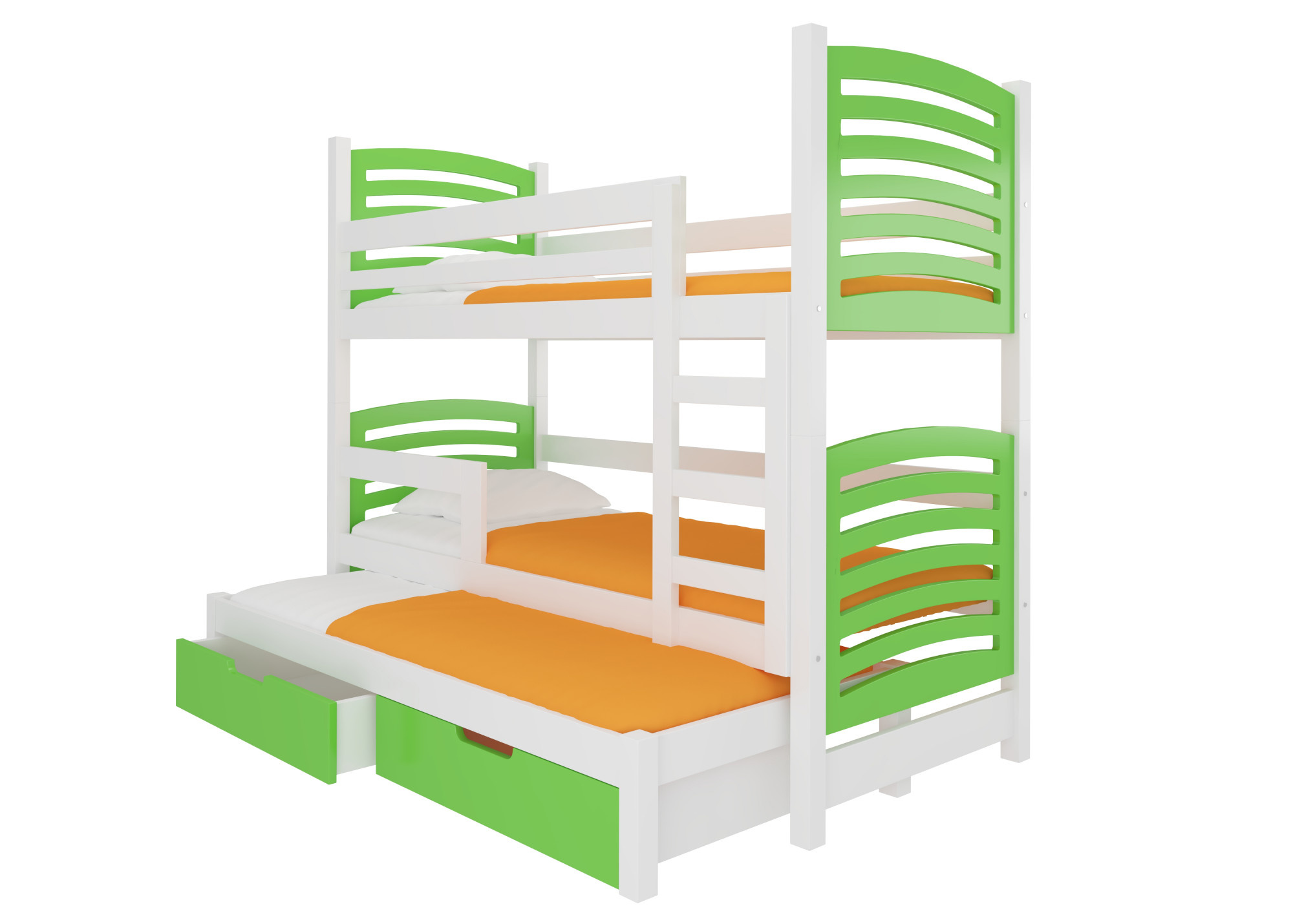 Háromszemélyes emeletes ágy matracokkal SORIA Fehér+Zöld