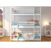 A TEDRO háromszintes emeletes ágy remek ötlet a helytakarékosságra egy kis gyerekszobában. Minden további emelet az előző felett található. A bútornak két stabil lépcsős létrája és védőkorlátja van, amelyek szinte a keret minden oldalán elhelyezkednek, így biztos lehet benne, hogy gyermeke alvás közben teljes biztonságban van. A matracok nem tartoznak az ágyhoz.