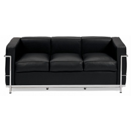 A háromszemélyes LC2 kanapé egy 1928-ból származó design klasszikus. A természetes bőr és a krómozott szerkezet kombinációja elegáns megjelenést kölcsönöz a bútornak, a kanapé puha töltete pedig kényelmet és komfortot biztosít. Ideális tervezés stúdiókhoz, irodákhoz és várótermekhez. A kanapé fehér és fekete színben kapható. A kollekció kiegészítője egy kétszemélyes kanapé és egy fotel. Nézd meg az LC további sorozatait is., Ülésmagasság: 43 cm Háttámla magassága: 24 cm Karfa magassága a padlótól: 65 cm Háttámla párna vastagsága: 12 cm Karfa vastagsága: 12 cm Karton méretei: 184x72x71 cm, Súly: 37 kg.