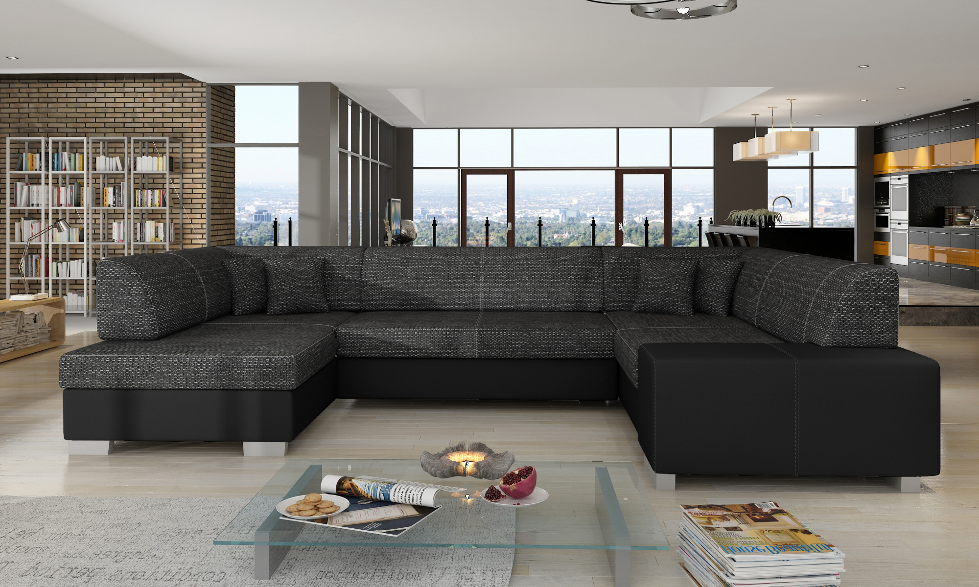 Havana is a spacious, luxurious upholstered corner sofa of a sizable size, measuring 320 x 167/207 x 73 cm, so it provides ample space for relaxation. The U-shaped piece of furniture has a comfortable, soft seat made of durable corrugated spring, as well as flexible T30 foam, so the whole thing is dent-resistant. Our corner sofa is equipped with a sleeping function and ample storage for bedding. The intuitive dolphin unfolding system makes it easy to turn the sofa into a 280x125cm bed gaining a really large area for a night's rest. Additional specifications of our Havana corner sofa include: classic, proven design, attention to detail of workmanship, simple geometric cut. The corner sofa also comes with large decorative cushions. Havana is the quintessence of comfort and good style, which will perfectly fit into more than one interior.