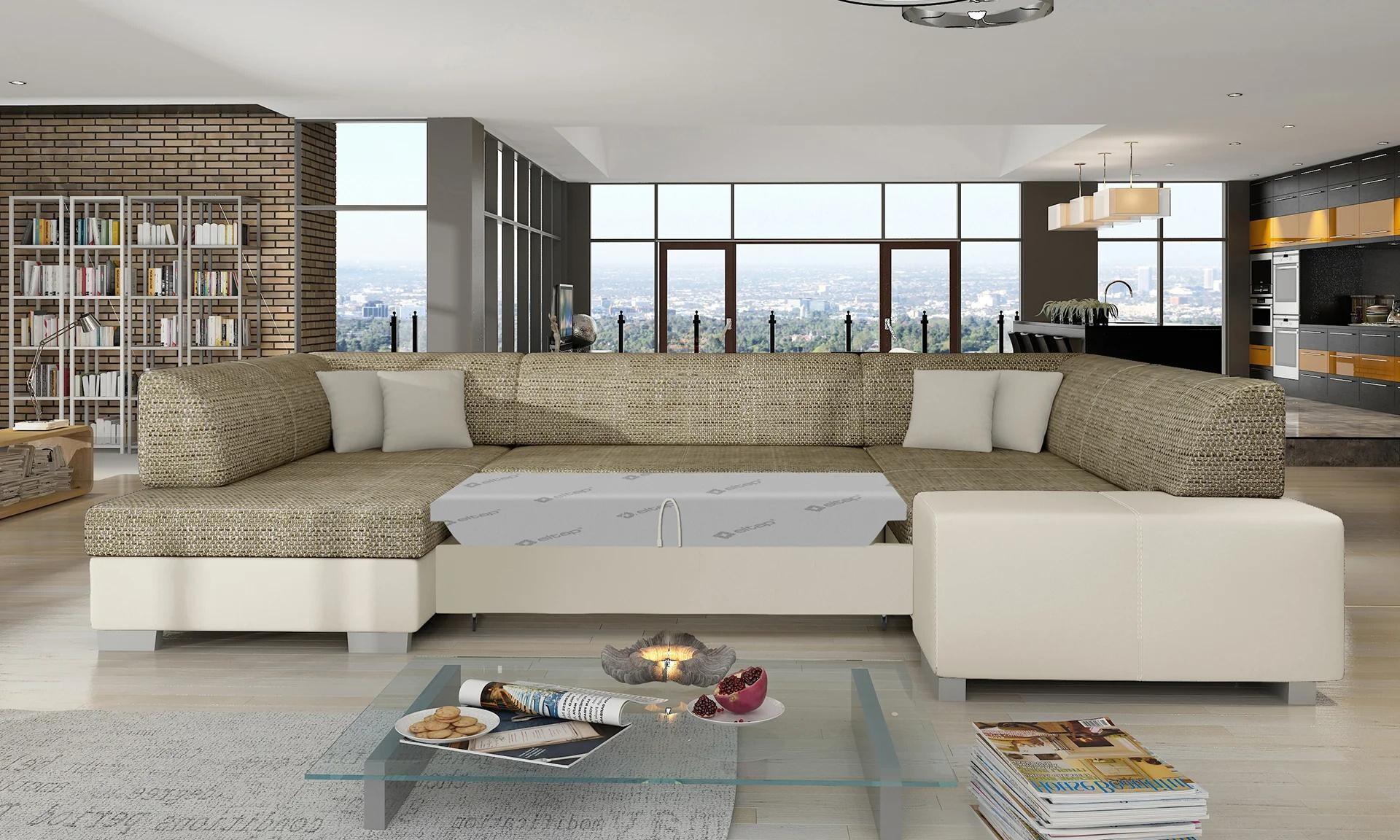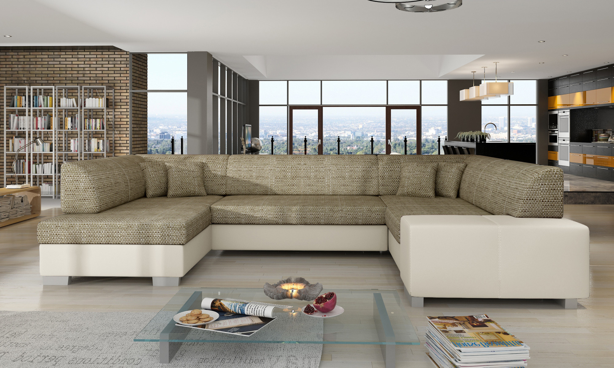 Havana is a spacious, luxurious upholstered corner sofa of a sizable size, measuring 320 x 167/207 x 73 cm, so it provides ample space for relaxation. The U-shaped piece of furniture has a comfortable, soft seat made of durable corrugated spring, as well as flexible T30 foam, so the whole thing is dent-resistant. Our corner sofa is equipped with a sleeping function and ample storage for bedding. The intuitive dolphin unfolding system makes it easy to turn the sofa into a 280x125cm bed gaining a really large area for a night's rest. Additional specifications of our Havana corner sofa include: classic, proven design, attention to detail of workmanship, simple geometric cut. The corner sofa also comes with large decorative cushions. Havana is the quintessence of comfort and good style, which will perfectly fit into more than one interior.